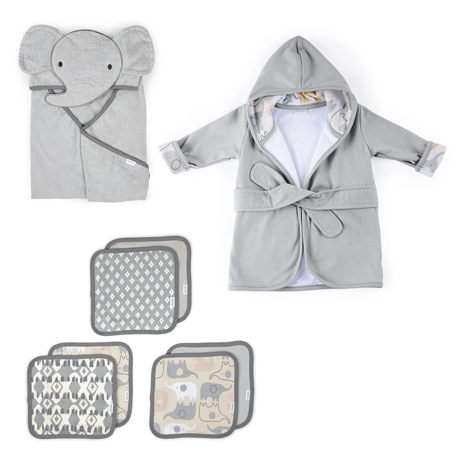 Ingenuity Clean & Cuddly Hooded Baby Bathrobe, Towel & 6-Pack Washcloth Set - Grazer