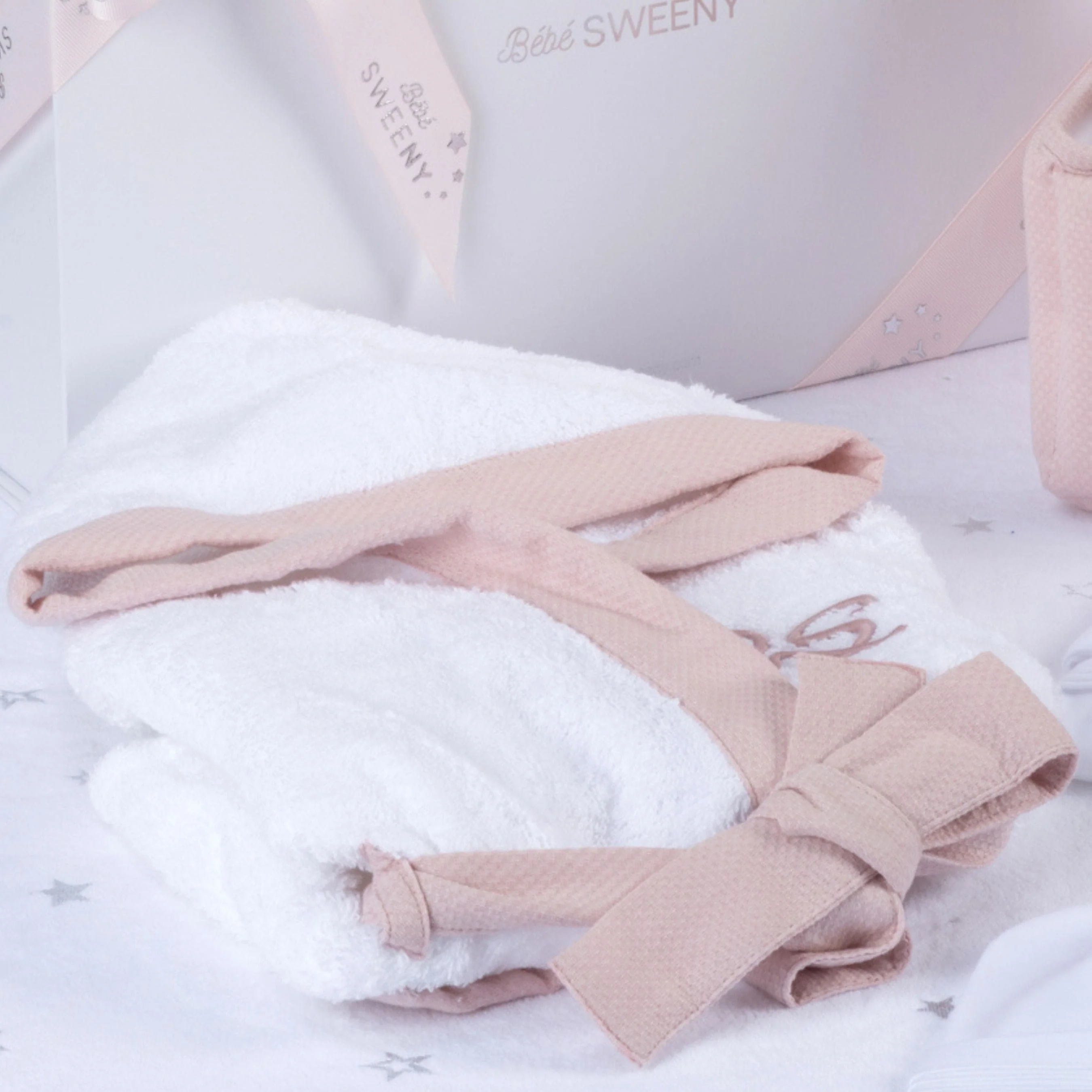 Bebe Sweeny MON BEAU TROUSSEAU | Girls White & Dusty Rose Personalised Bathrobe