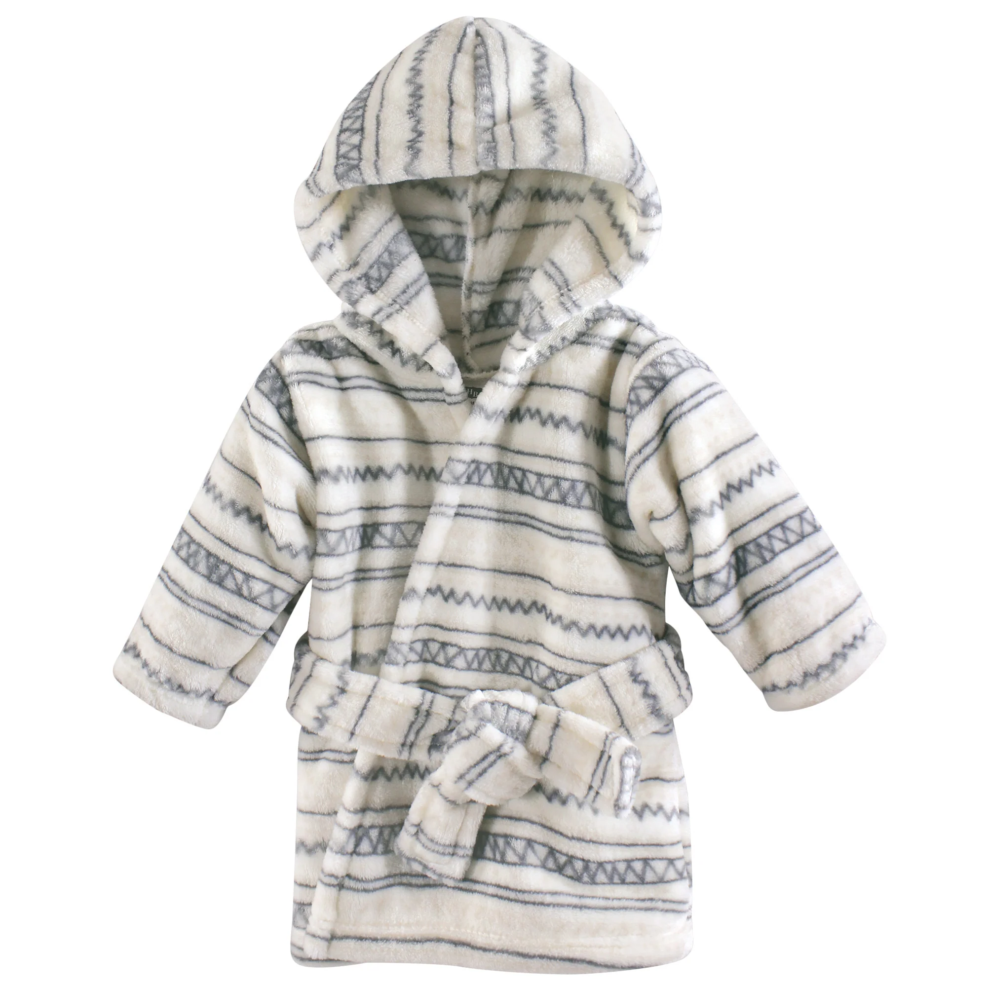 Little Treasure Baby Boy Plush Bathrobe, Chevron Elephant, 0-9 Months