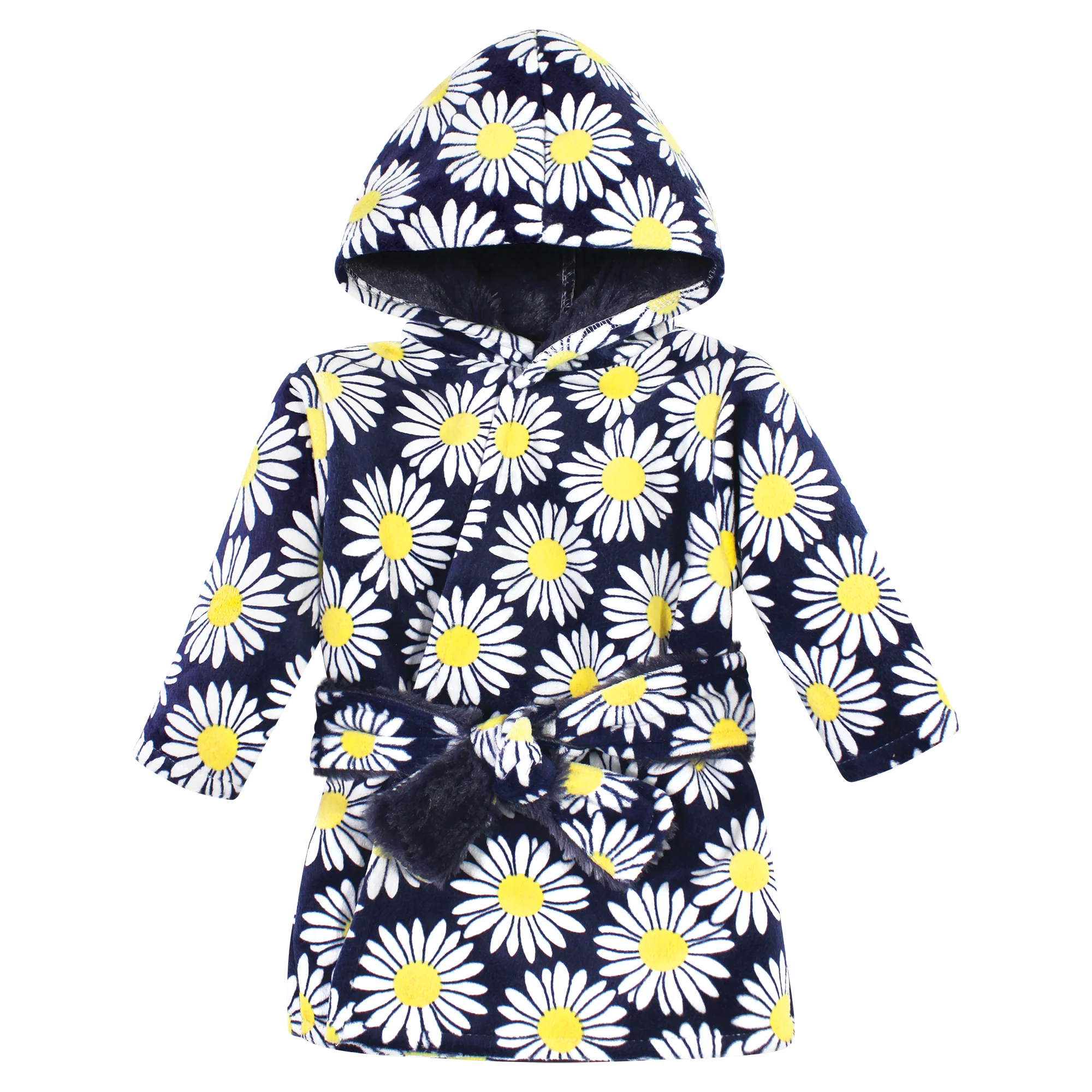 Hudson Baby Mink with Faux Fur Lining Pool and Beach Robe Cover-ups, Navy Daisy