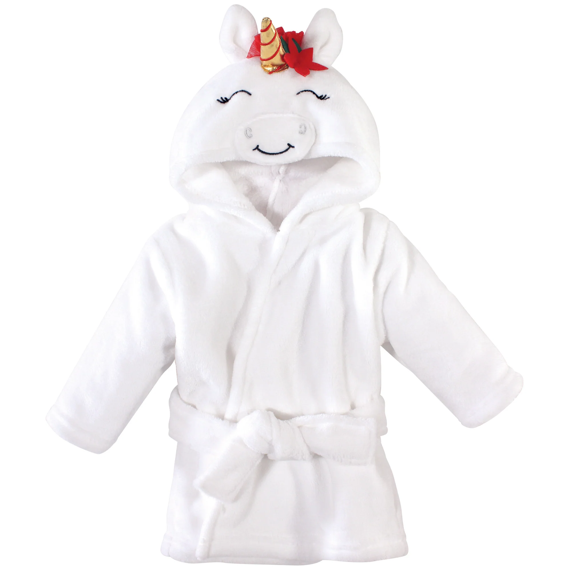 Hudson Baby Infant Girl Plush Animal Bathrobe, Christmas Unicorn, 0-9 Months