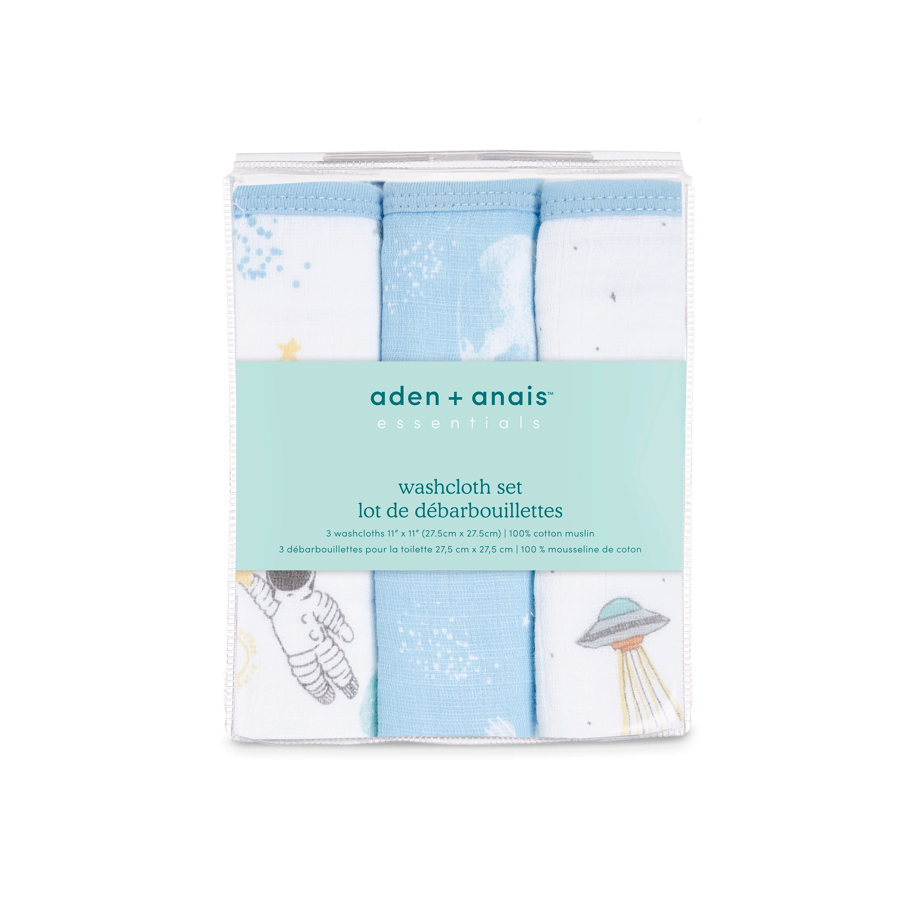 aden + anais Essential Cotton Muslin Washcloths 3 pack Space Explorers Blue