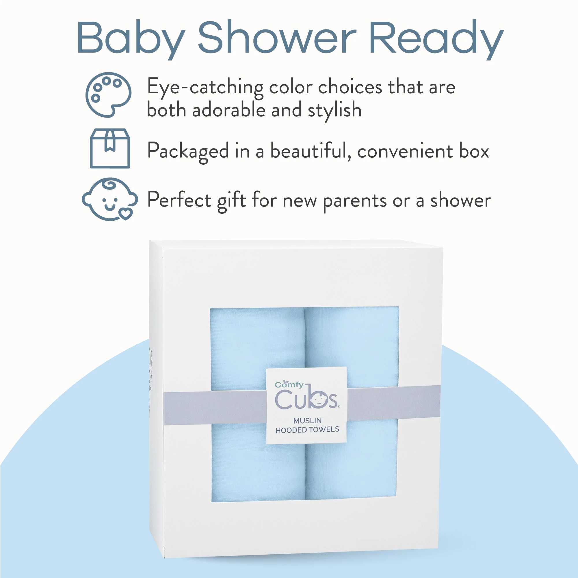 • Larger Size for Better Coverage – Comfy Cubs muslin cotton hooded towels are a bigger 32 x 32 inches in size which helps support newborn infants and growing toddlers, so they can enjoy better coverage from their heads to their little bottoms.