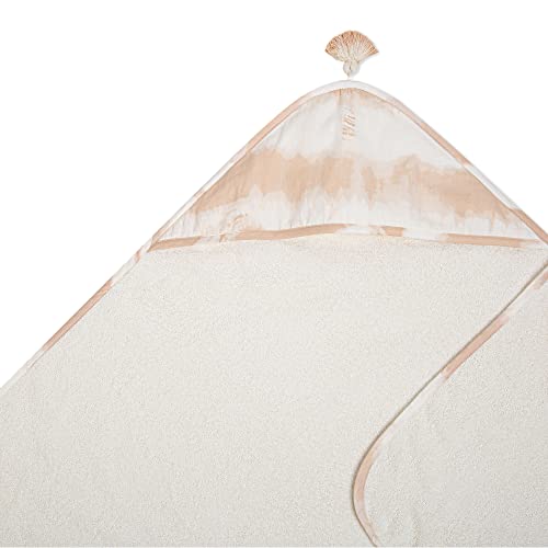 - SIZE: One 30”w x 30”h cotton and sateen hooded baby towel in cream and pink