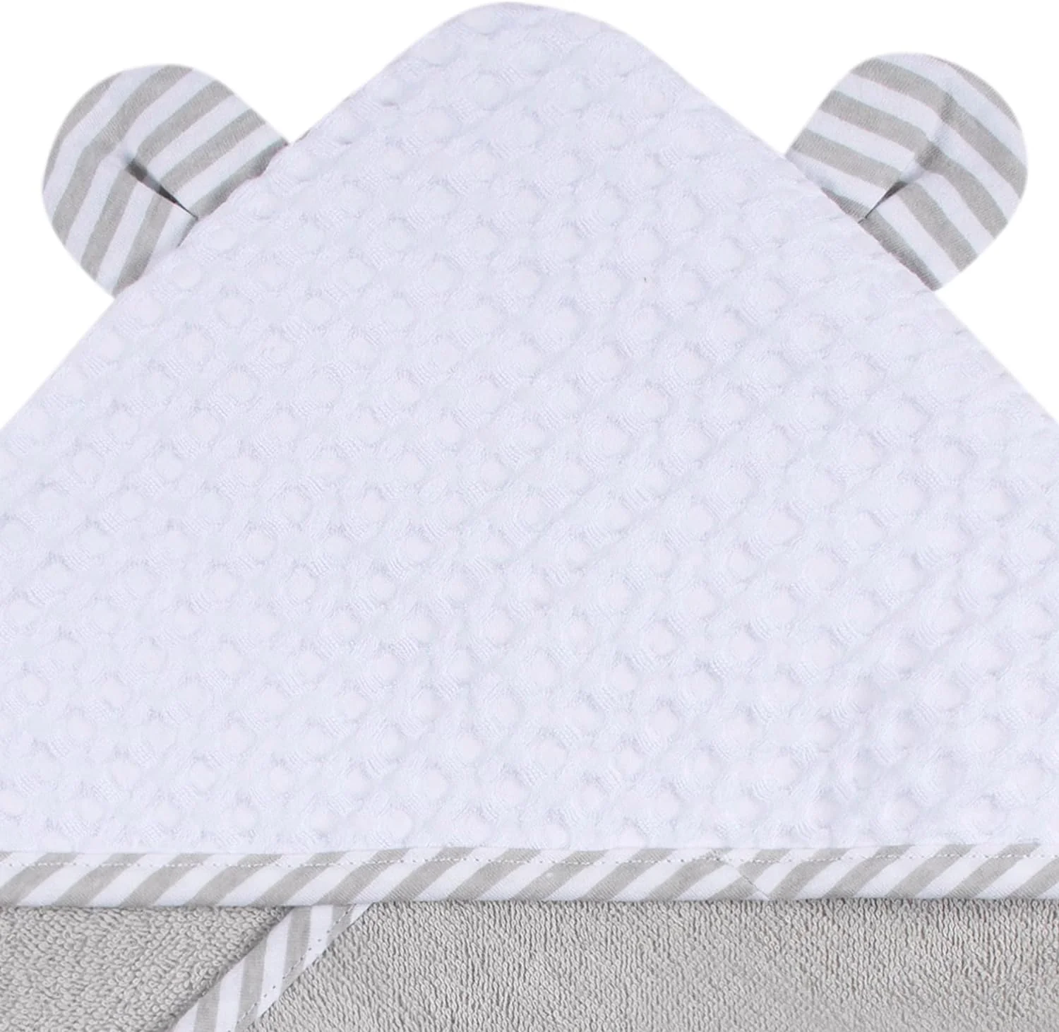 Bathe and dry your baby in style with this adorable, hooded towel and washcloth mitt set! The cotton/poly blended fabric is wonderfully soft to use against baby's delicate and tender skin. We use STANDARD 100 by OEKO-TEX certification on products tested in an independent laboratory against a list of more than 400 harmful substances, including PFAS. Bonus feature, they are easy to clean and care for too, just throw them in the washing machine and dryer!