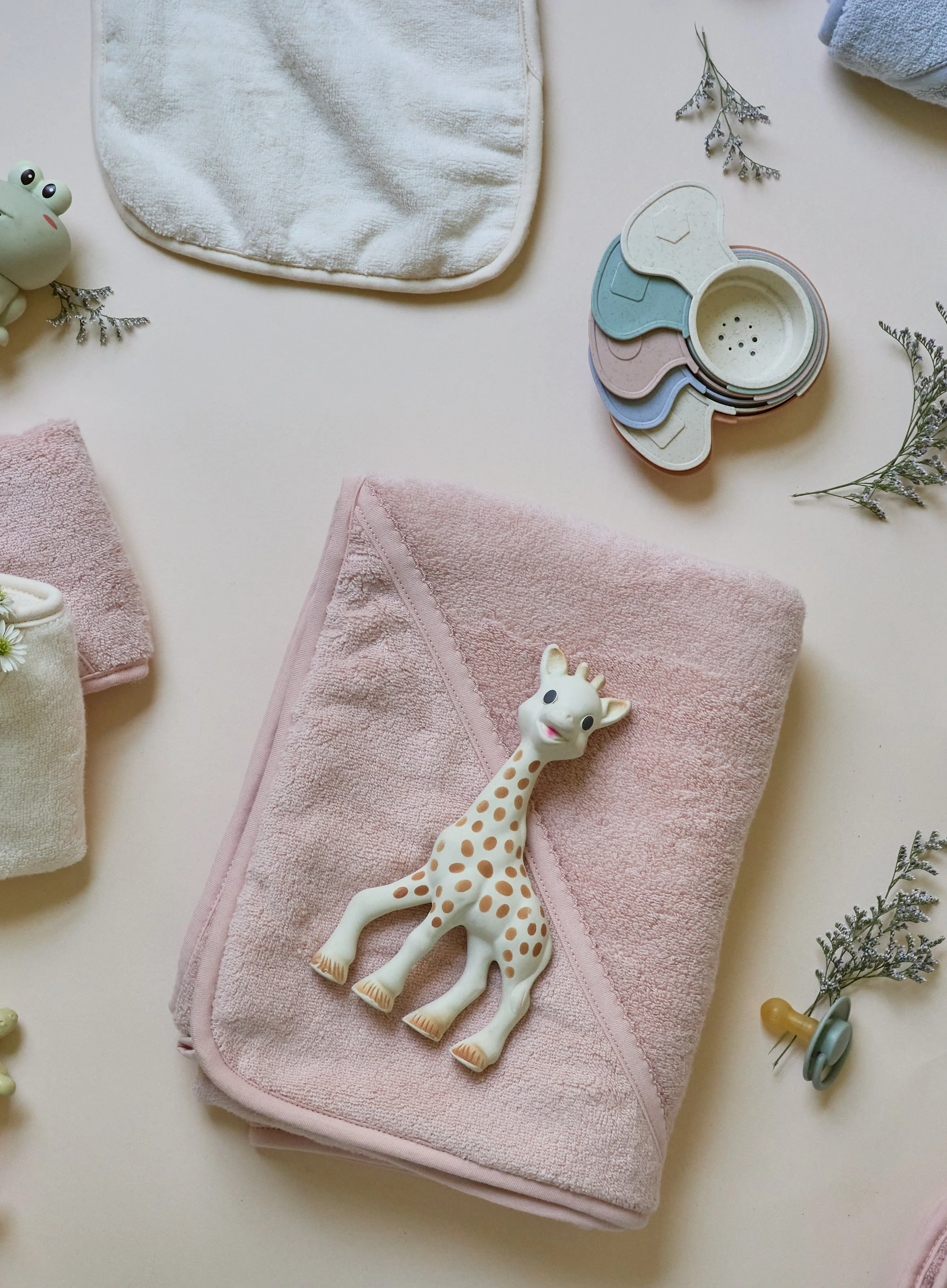 - This ultra-cozy, hooded towel and washcloth set features a sweet and whimsical, sage pear print on ivory jersey knit cotton embellished with a soft and neutral sage trim. Classic, comfortable and designed on-point with the latest fashion trends, this ultra-absorbent bath set is a must-have addition to your Baby Registry and modern décor.