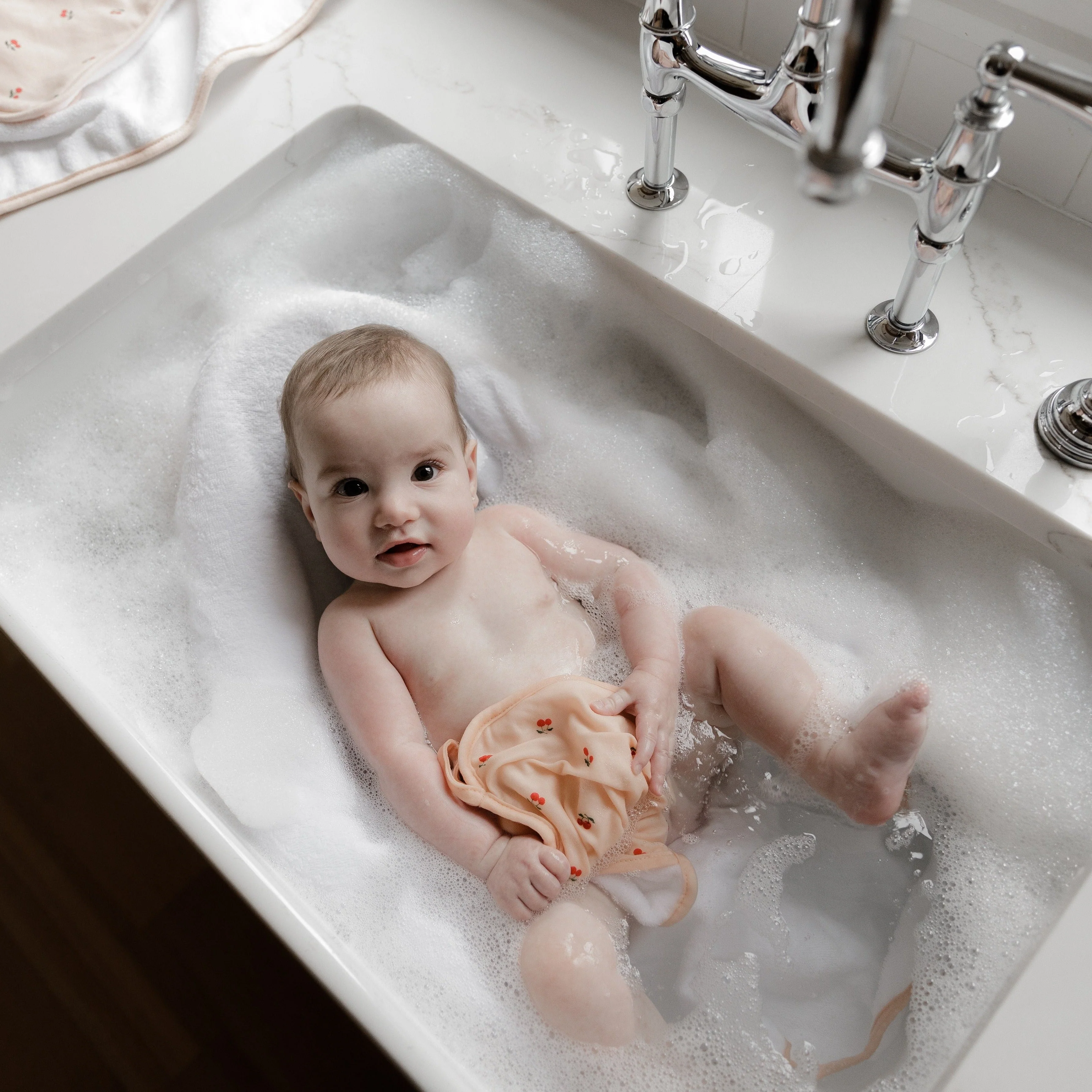 - Made from 100% cotton terry and jersey knit cotton, our superbly soft and generously sized hooded towel provides baby with premium comfort and warmth ideal for use after bath time and at the pool or beach. The set’s washcloth features a convenient pocket that parents can insert their hand into, making for a more efficient bath time. Not to mention, the washcloth comes with a hanging loop, useful for drying and storage.