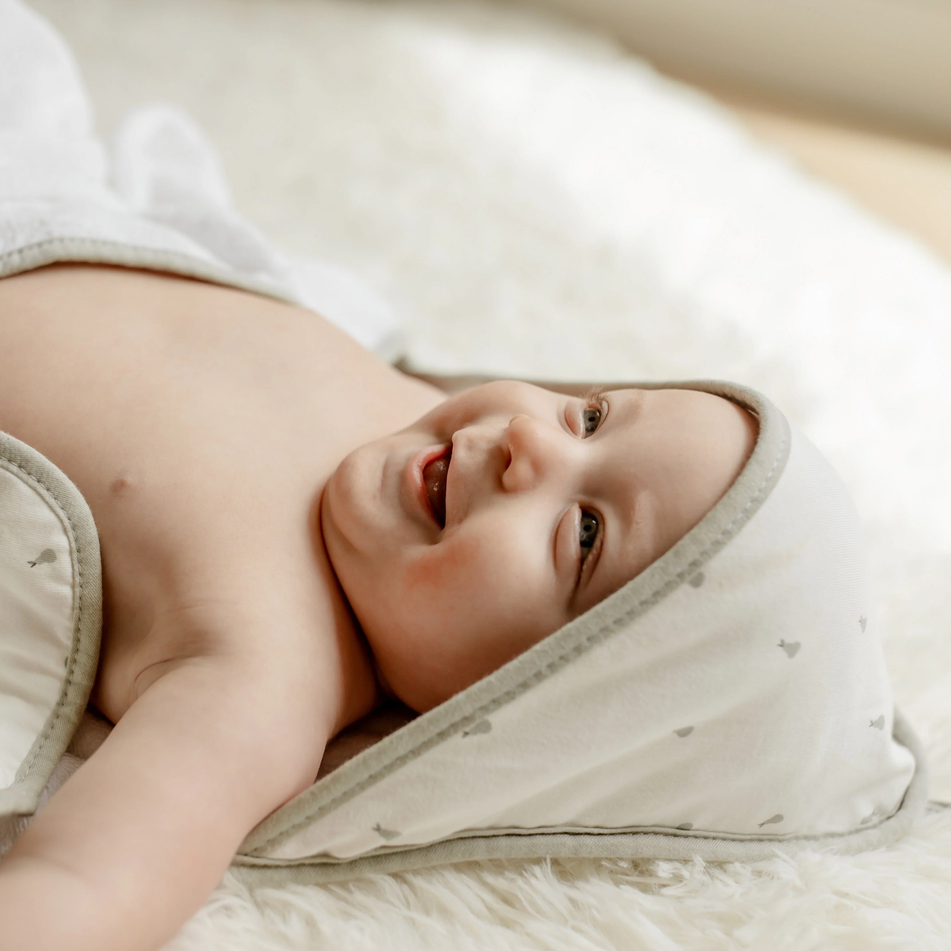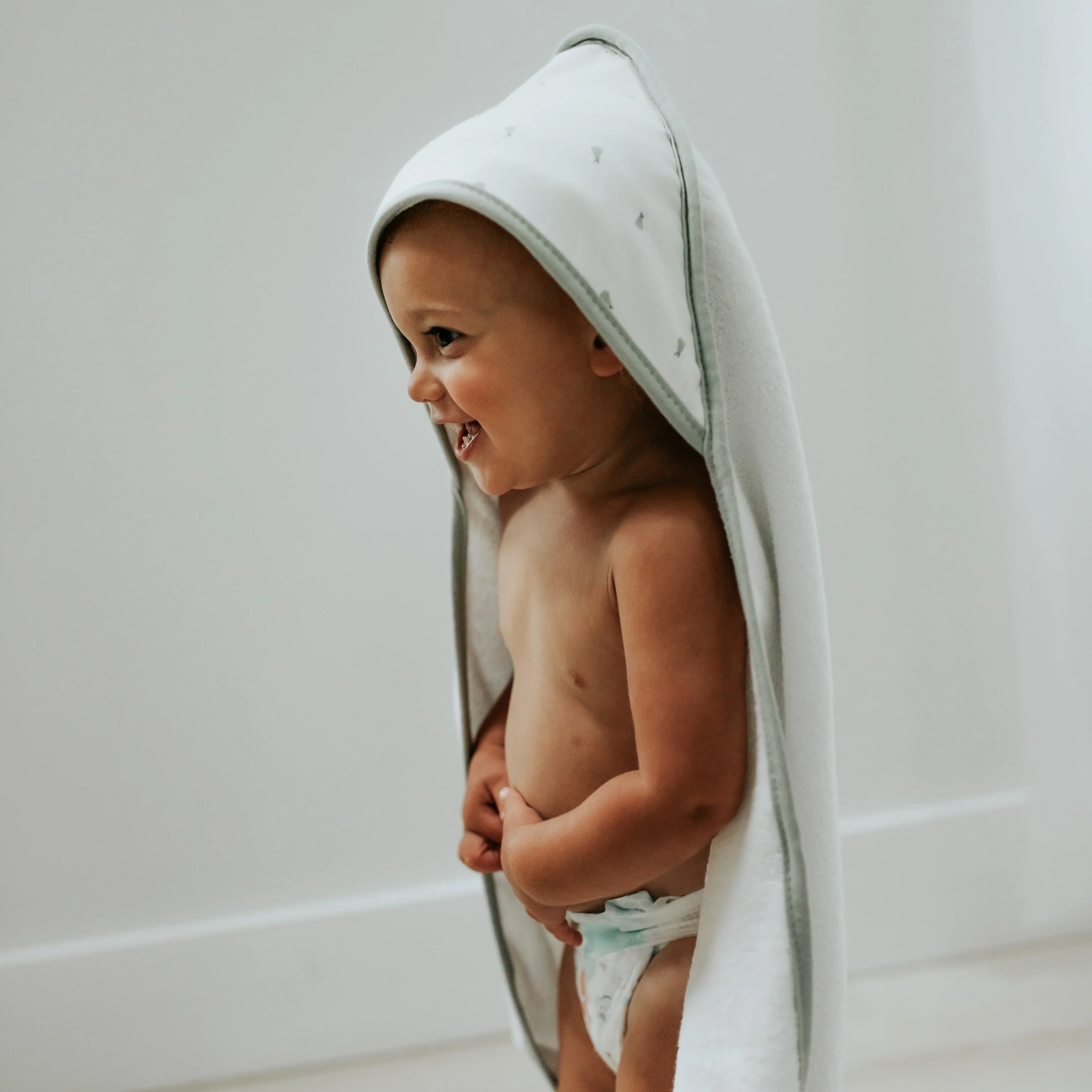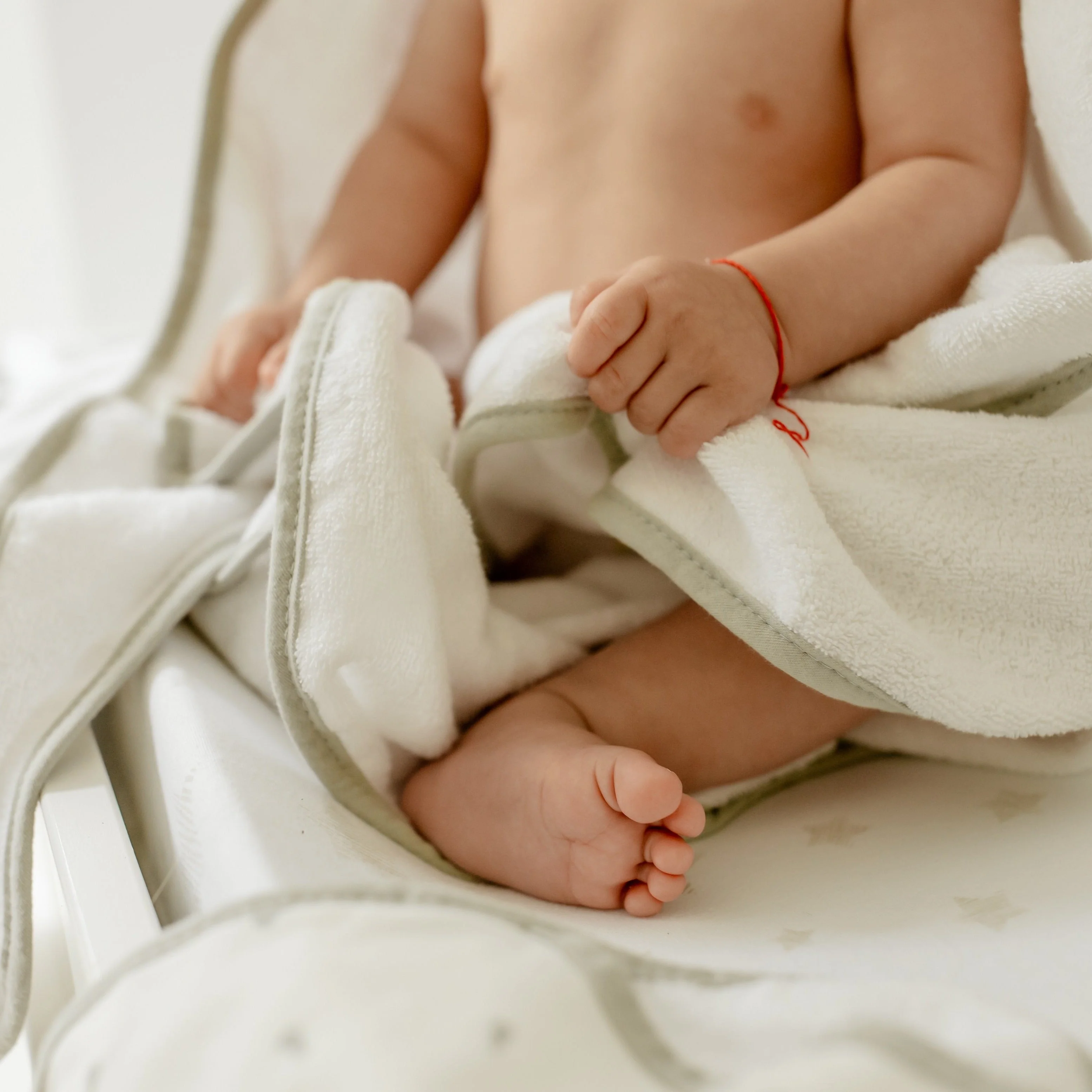 - This ultra-cozy, hooded towel and washcloth set features a sweet and whimsical, sage pear print on ivory jersey knit cotton embellished with a soft and neutral sage trim. Classic, comfortable and designed on-point with the latest fashion trends, this ultra-absorbent bath set is a must-have addition to your Baby Registry and modern décor.