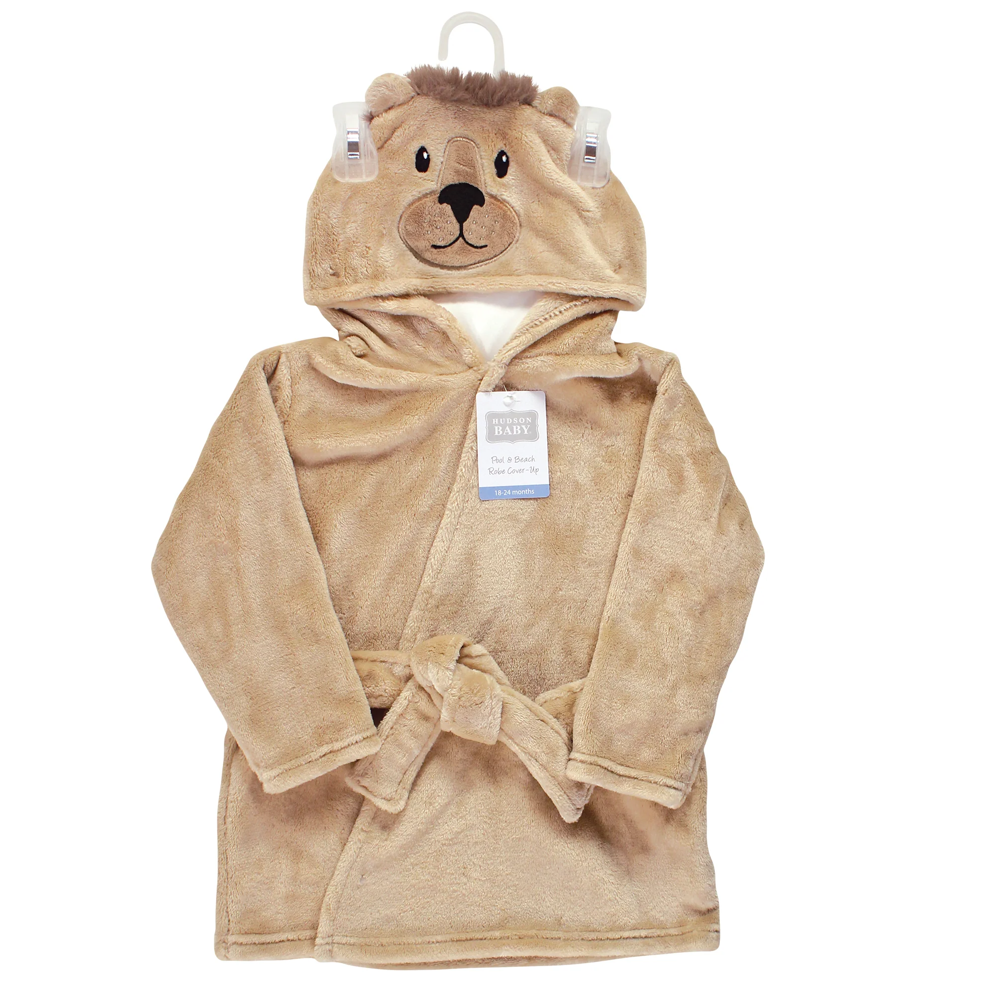 The Hudson Baby Lion Pool Robe offers a cozy, plush beach cover-up with long sleeves. The detailed hood features a fun animal design sure to make water time all the more fun for your baby.