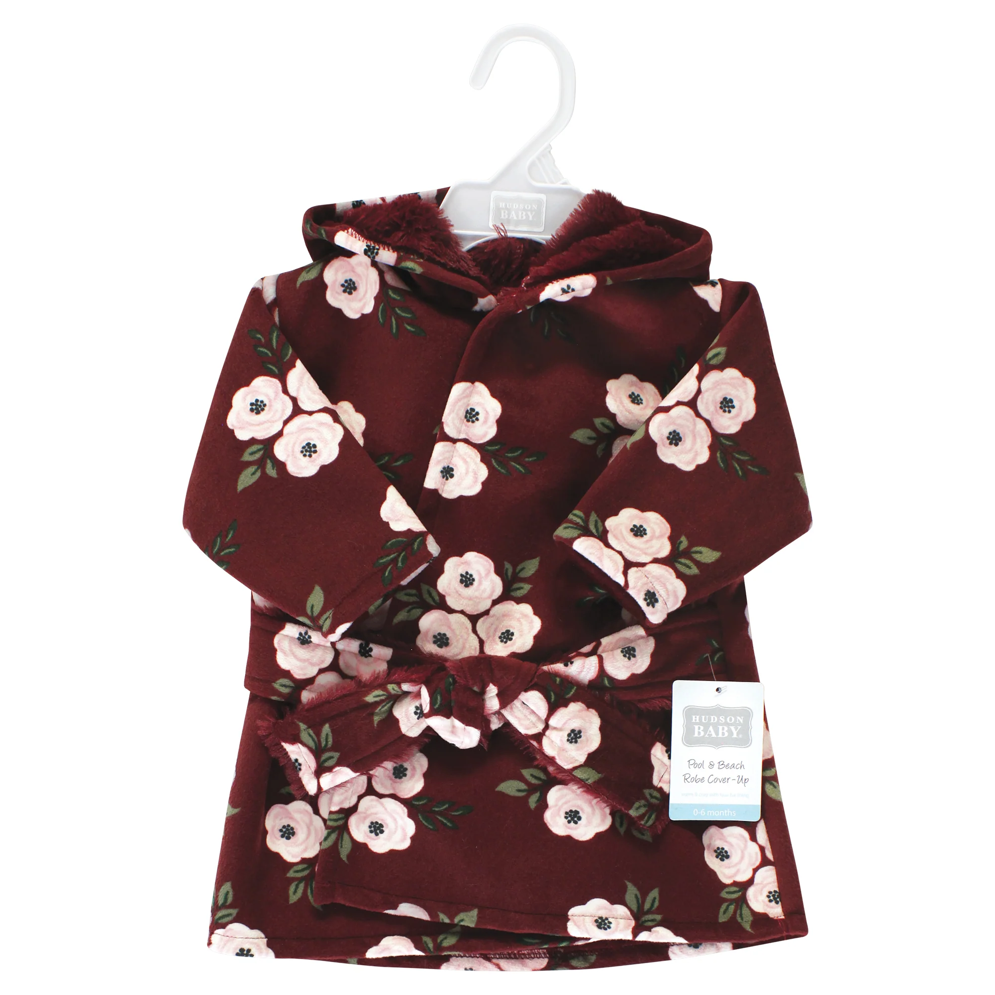 Hudson Baby Mink with Faux Fur Lining Pool and Beach Robe Cover-ups, Burgundy Floral