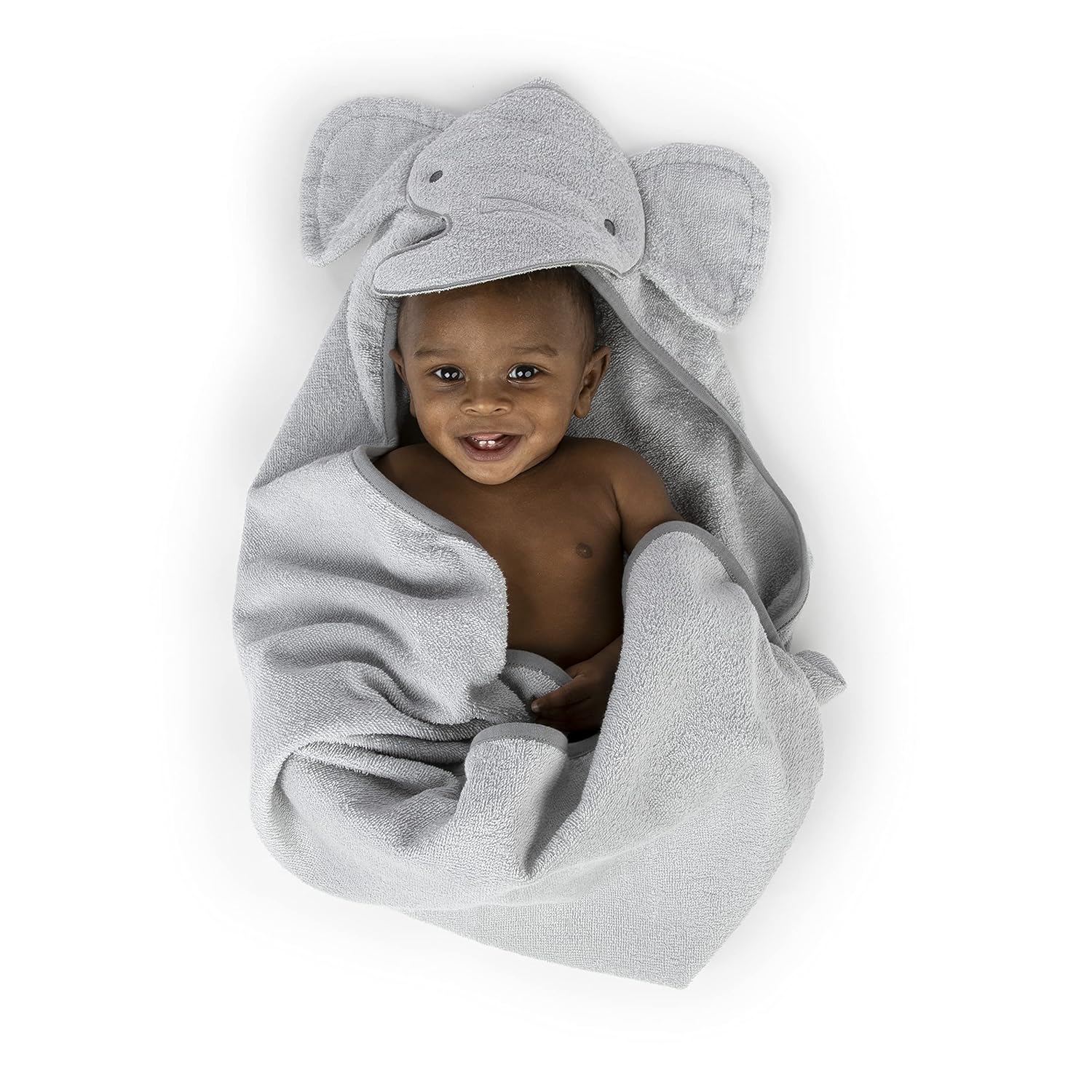 Before PJs, this lovable Ingenuity Clean & Cuddly™ Hooded Character Towel will be just the post-bath cozy companion your baby needs. See your baby’s face peek out from underneath the sweet elephant animal hood. The towel's lightweight, soft woven terry cloth fabric keeps baby toasty and dry between the bath and jammies.