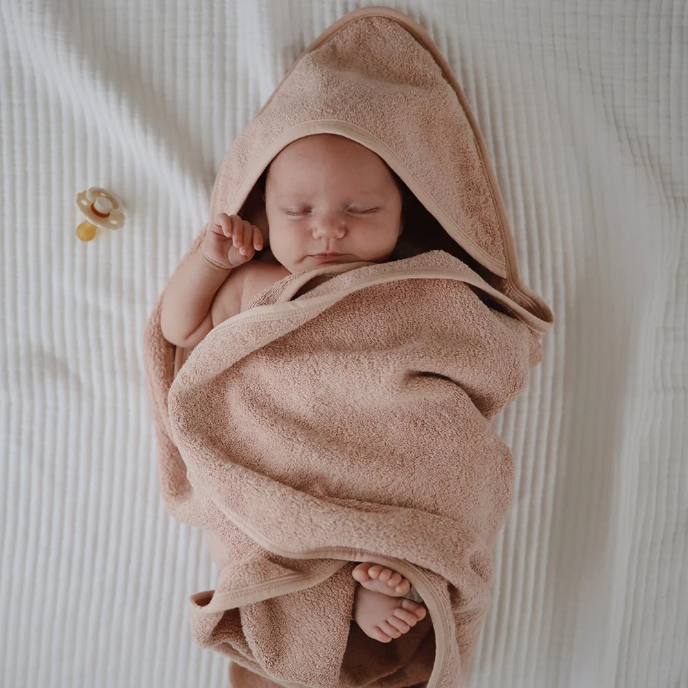 - Made from 100% organic cotton, our hooded towel is gentle on sensitive skin and perfect for cozy cuddles after bath time. The fabric is absorbent and durable, staying soft wash after wash.