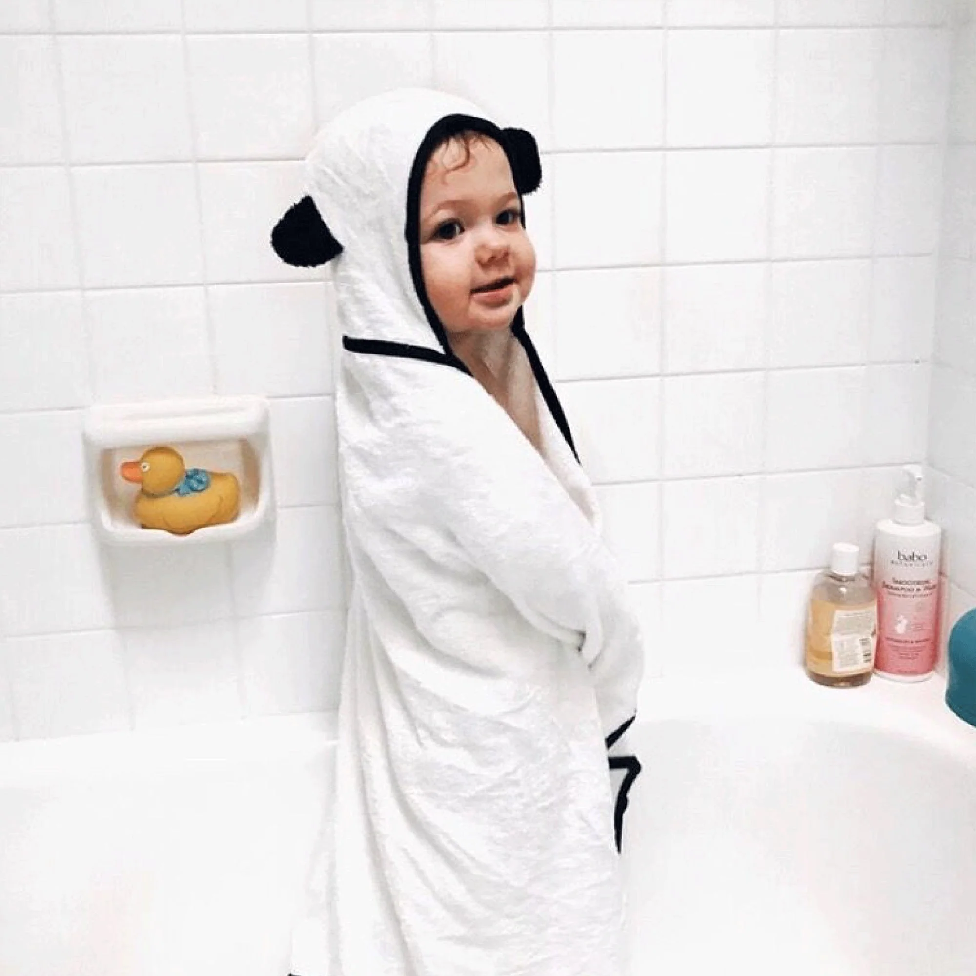 Wrap your little one in our ultra-soft, super absorbent, warm and plush Panda Bamboo Hooded Towel. The baby towels are designed to fit from infant to toddler. Viscose from Bamboo and cotton fibers are gentle against sensitive and eczema-prone skin as they're hypoallergenic. The hooded bath towel is also UV blocking, making the baby towels perfect for the pool or beach. The baby washcloths are a great size for getting around tiny fingers and toes. 500 GSM