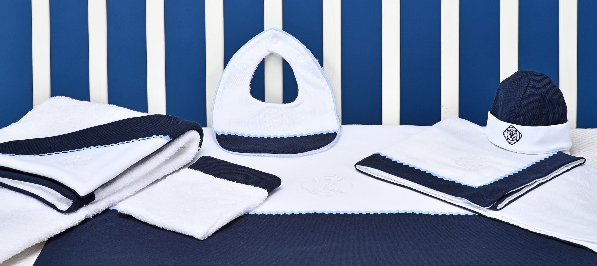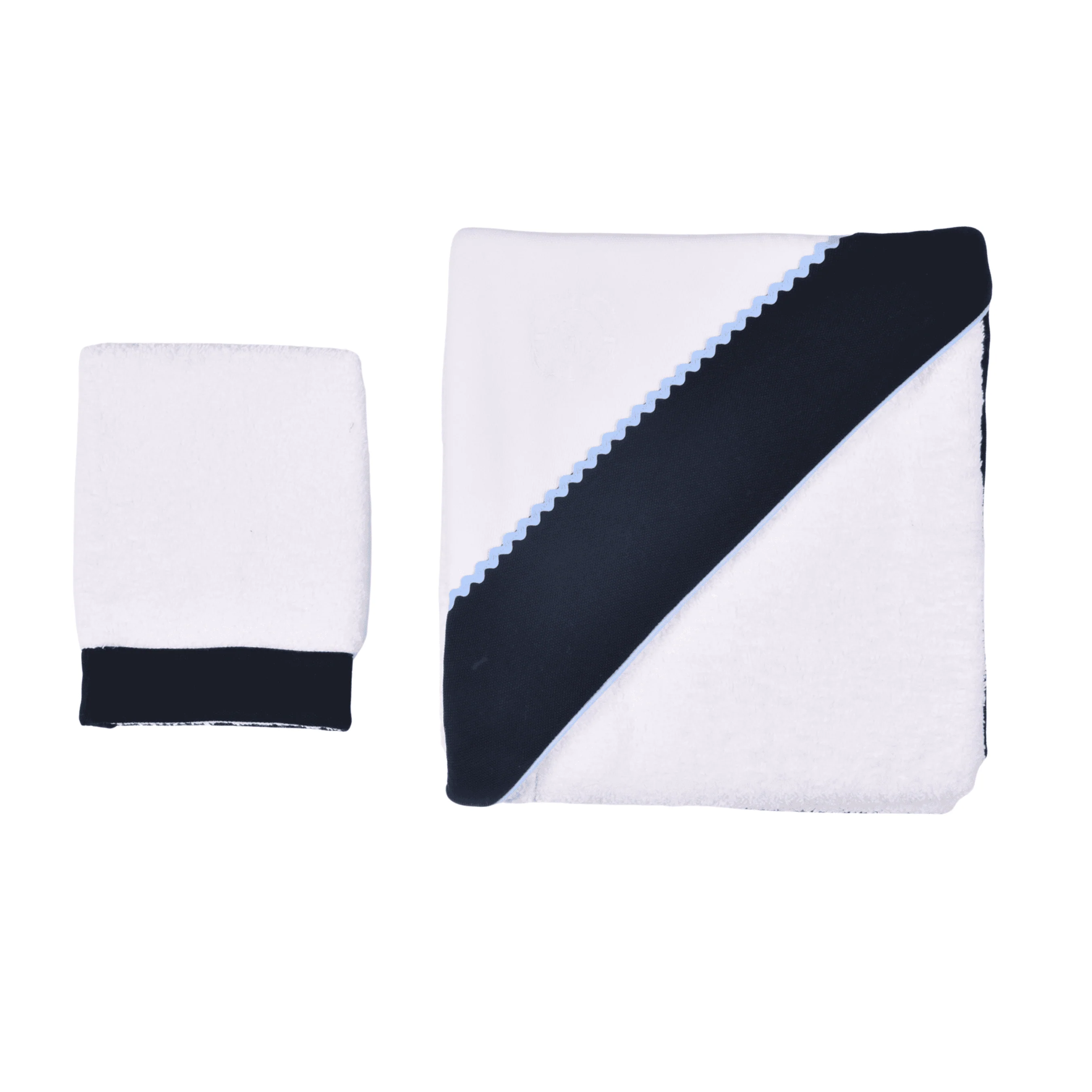 Bebe Sweeny PETIT MARIN | White & Navy Hooded Towel & Washcloth (2)
