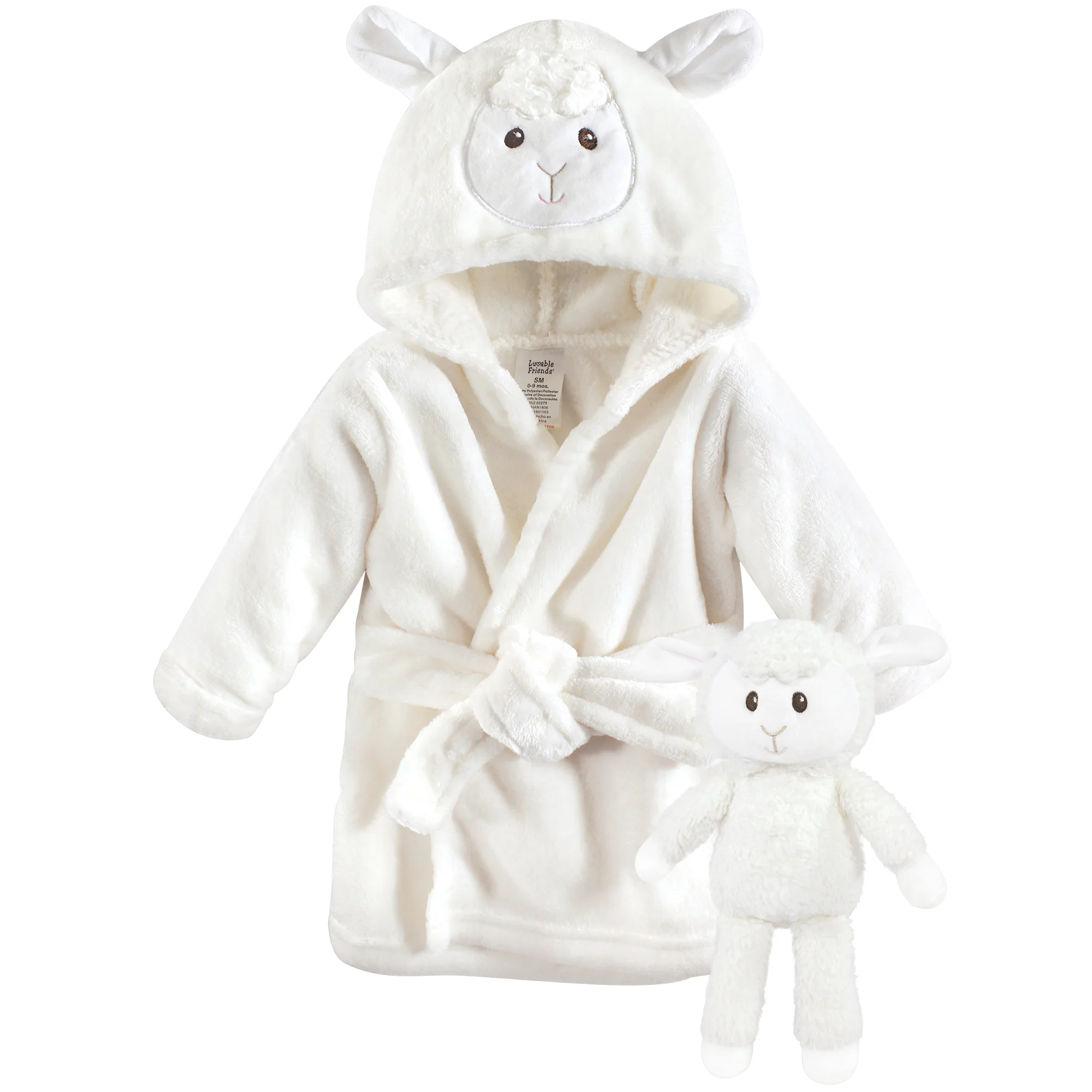 Luvable Friends Plush Bathrobe and Toy Set, Lamb, 0-9 Months