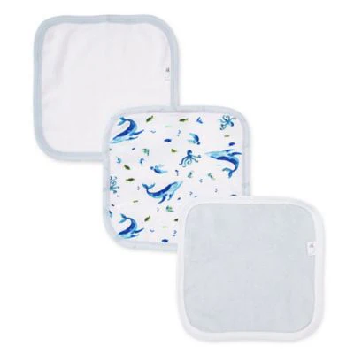 Burt's Bees Baby Set of 3 Whale of a Tail Rain Washcloth - Light Blue
