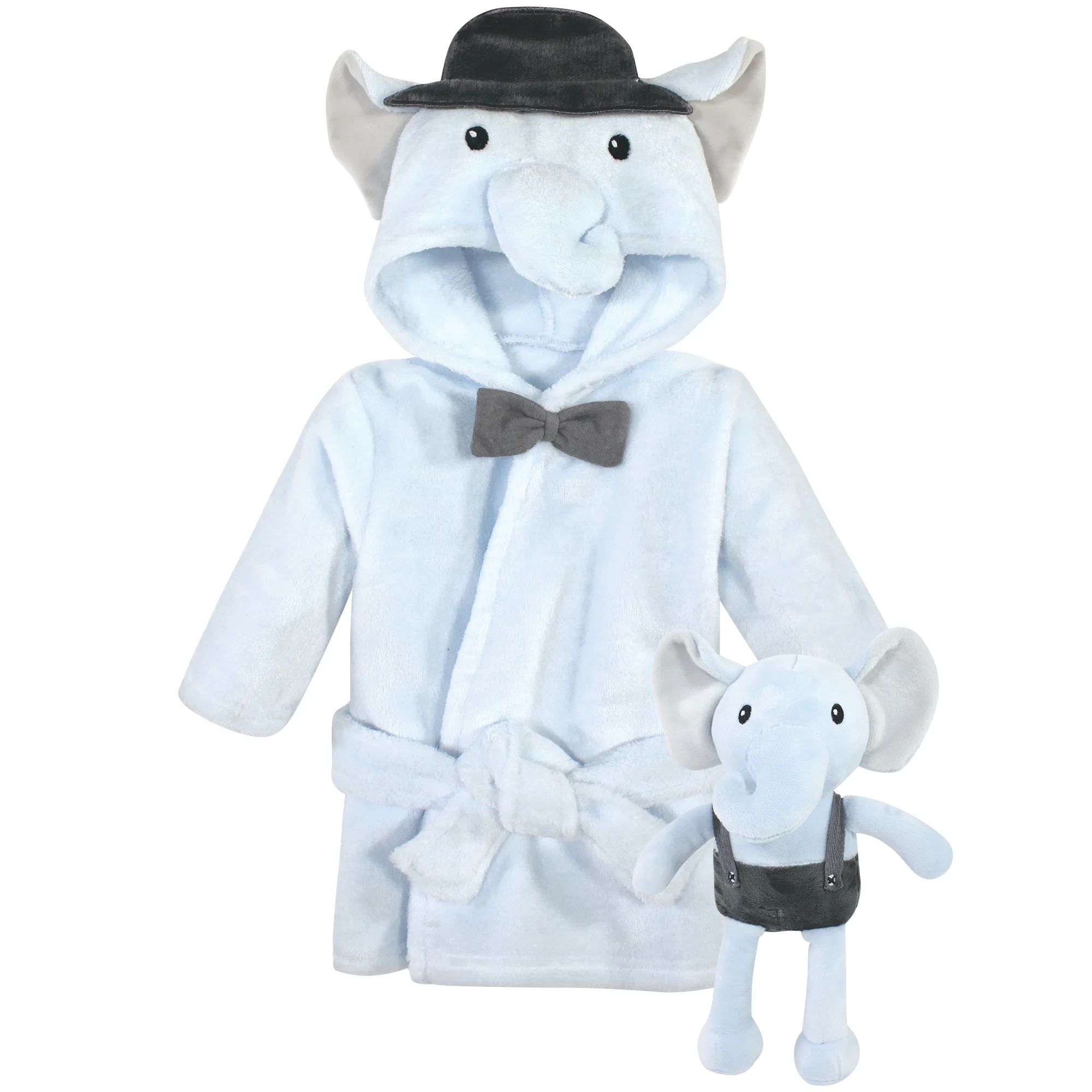 Hudson Baby Infant Boy Plush Bathrobe and Toy Set, Bowtie Elephant, One Size