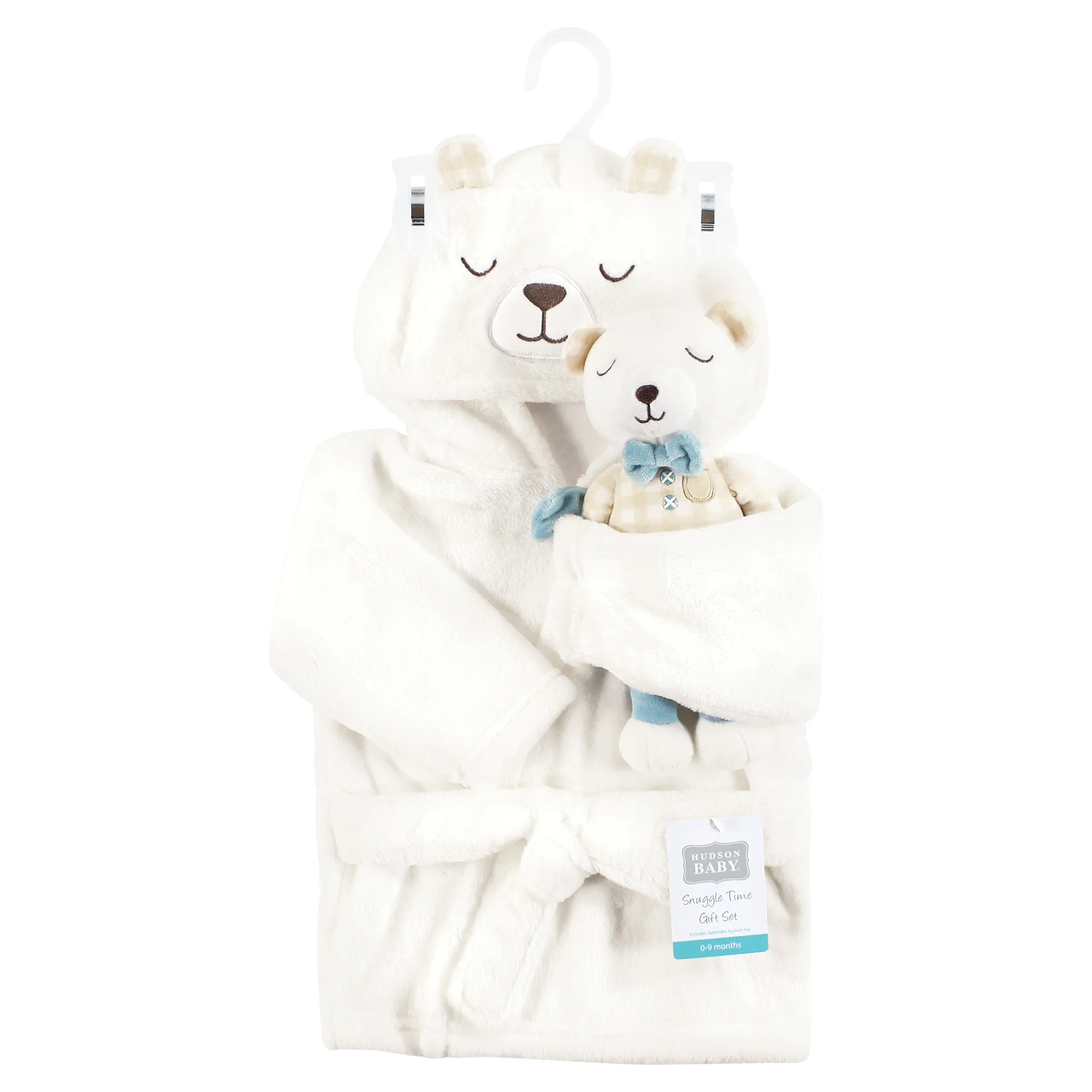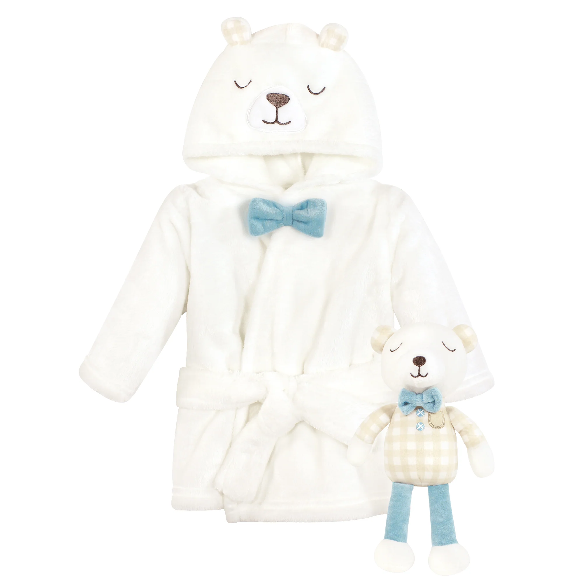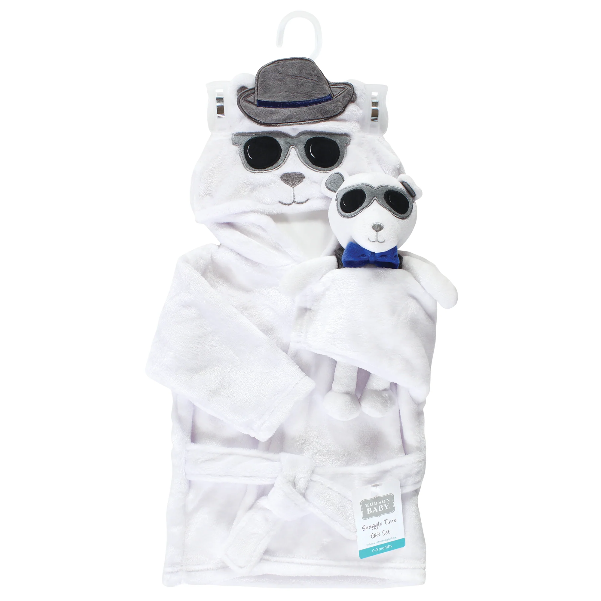 Hudson Baby Infant Boy Plush Bathrobe and Toy Set, Handsome Bear, One Size