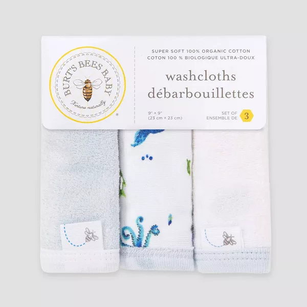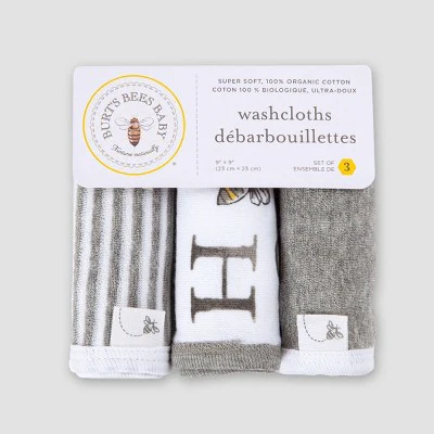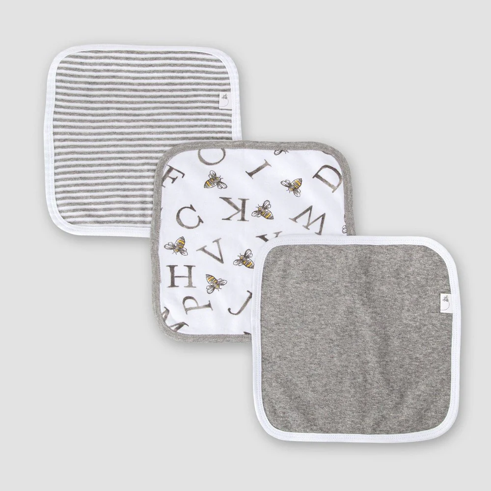 Burt's Bees Baby Set of 3 A-Bee-C Washcloths - Gray