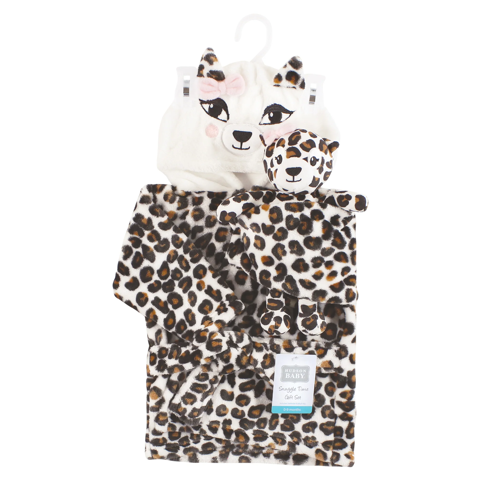 Hudson Baby Plush Bathrobe and Toy Set, Leopard, One Size