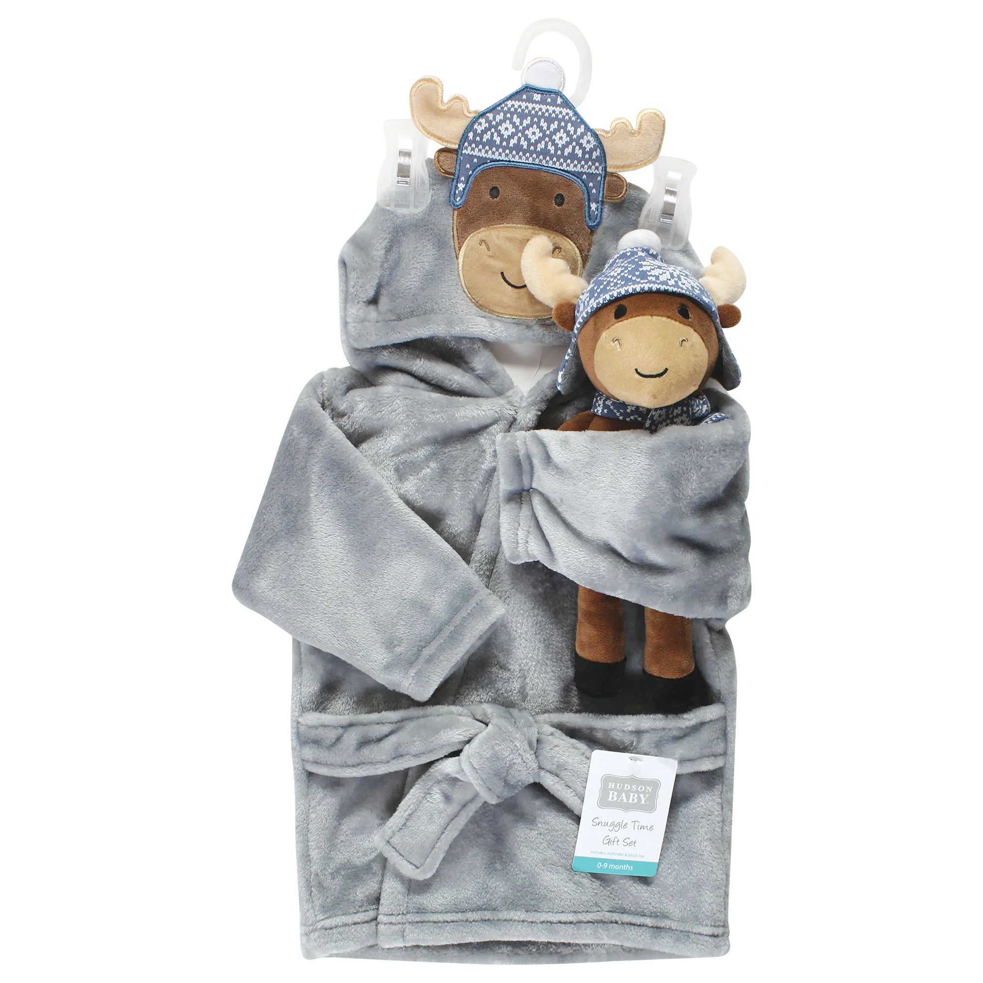 Hudson Baby Infant Boy Plush Bathrobe and Toy Set, Winter Moose, One Size