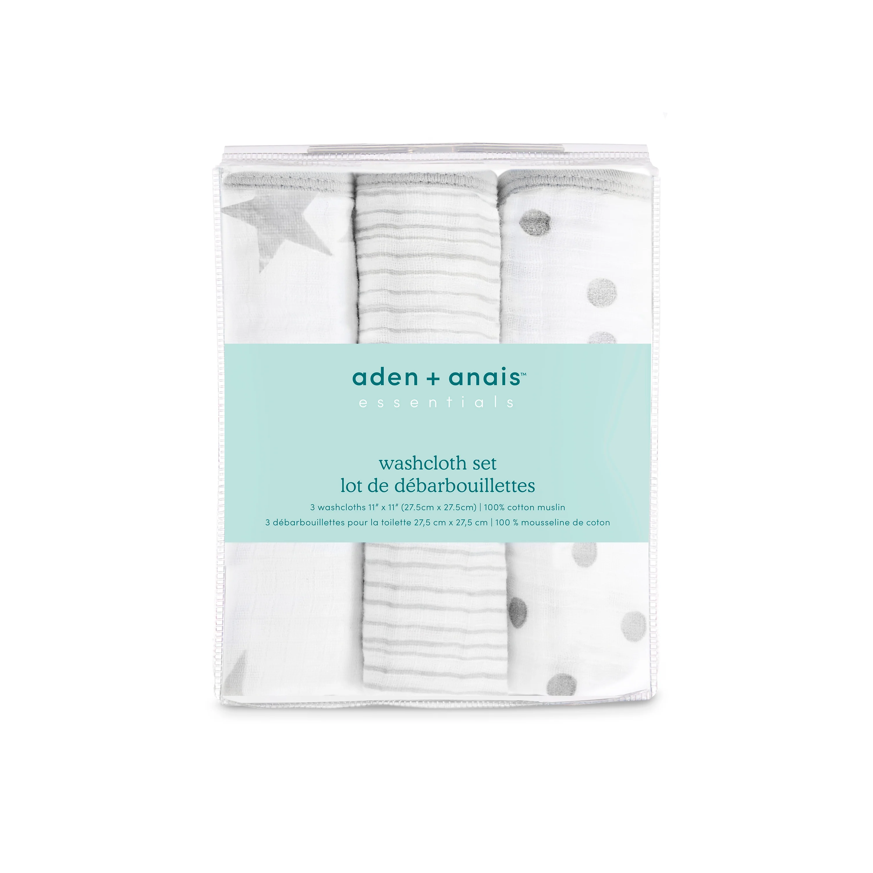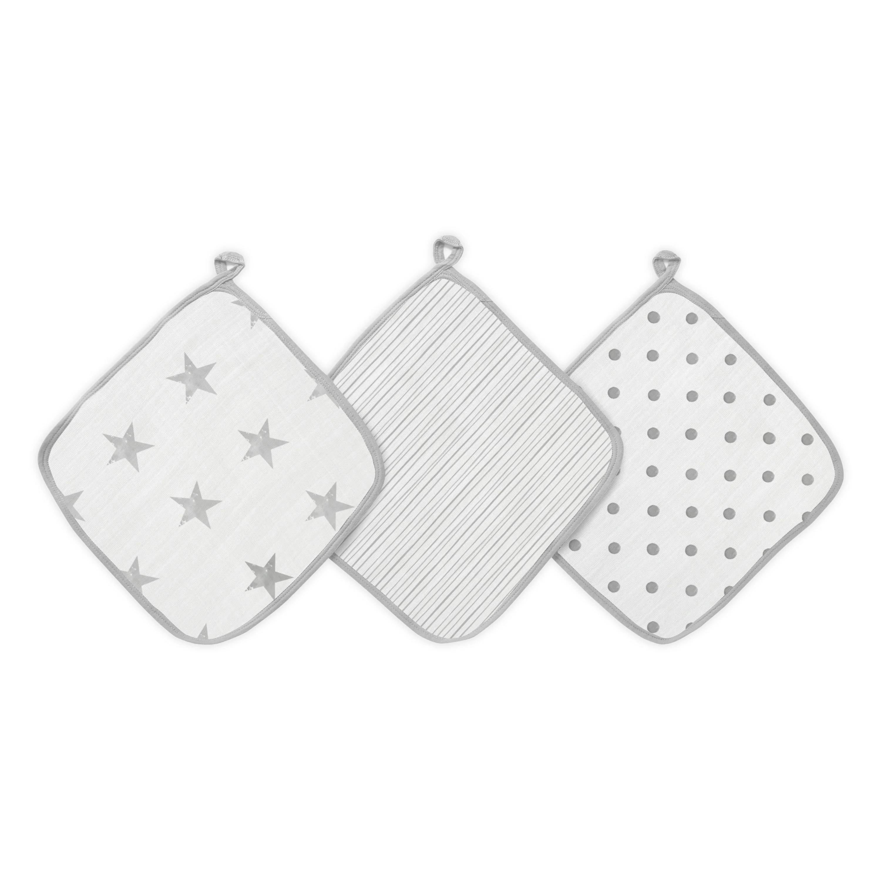 aden + anais Essential Cotton Muslin Washcloths 3 pack Dusty Gray Stars