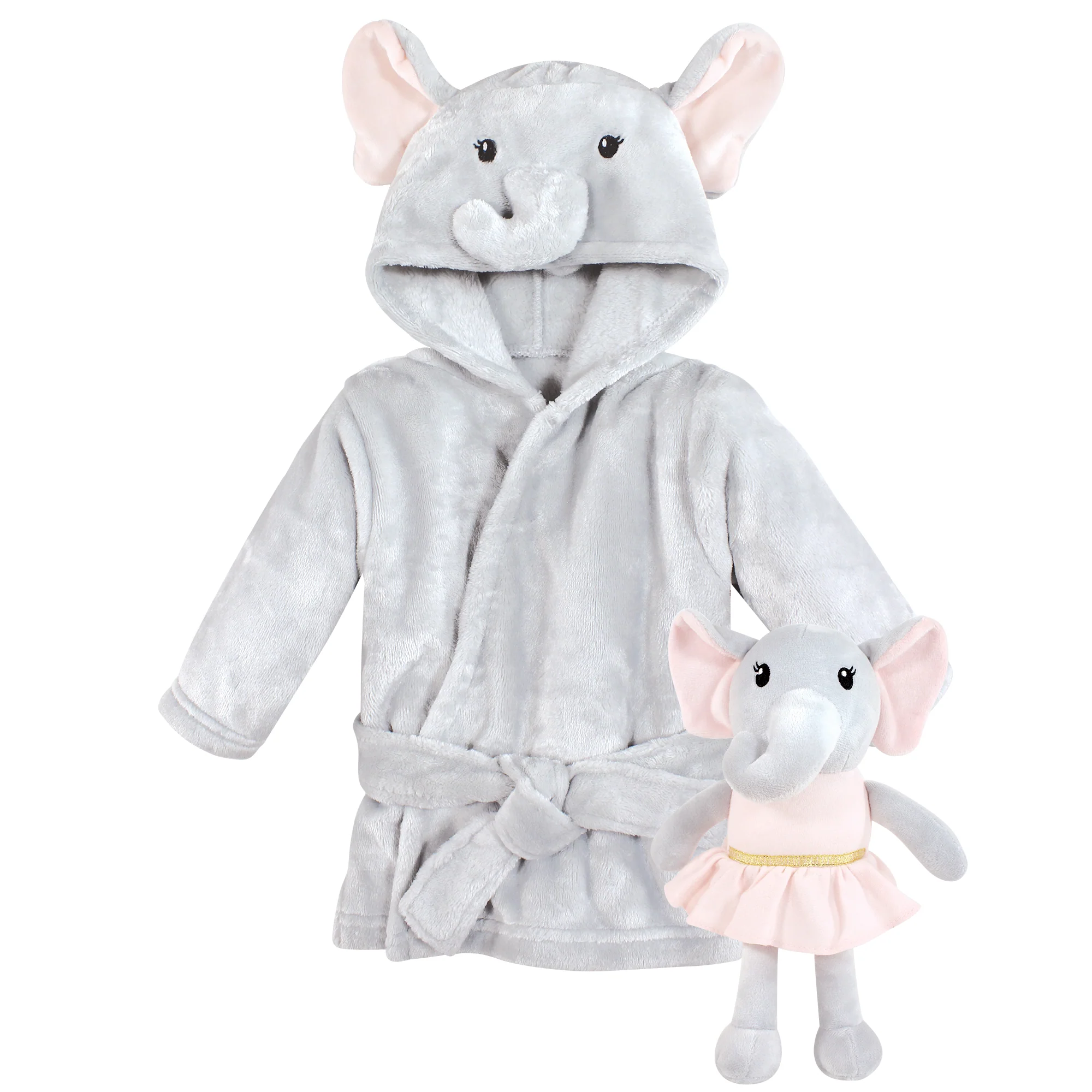 Hudson Baby Plush Bathrobe and Toy Set, Dreamy Elephant Girl, One Size