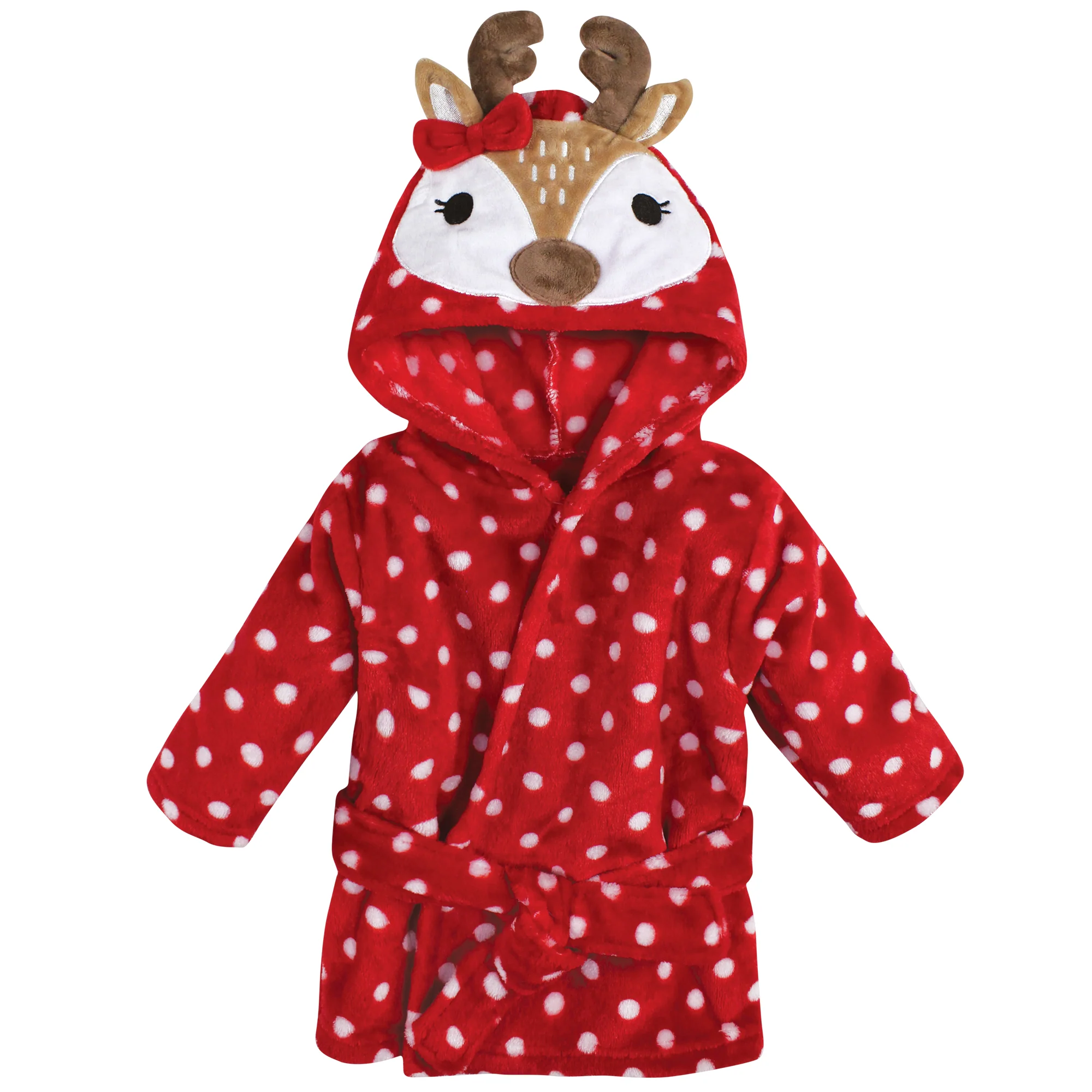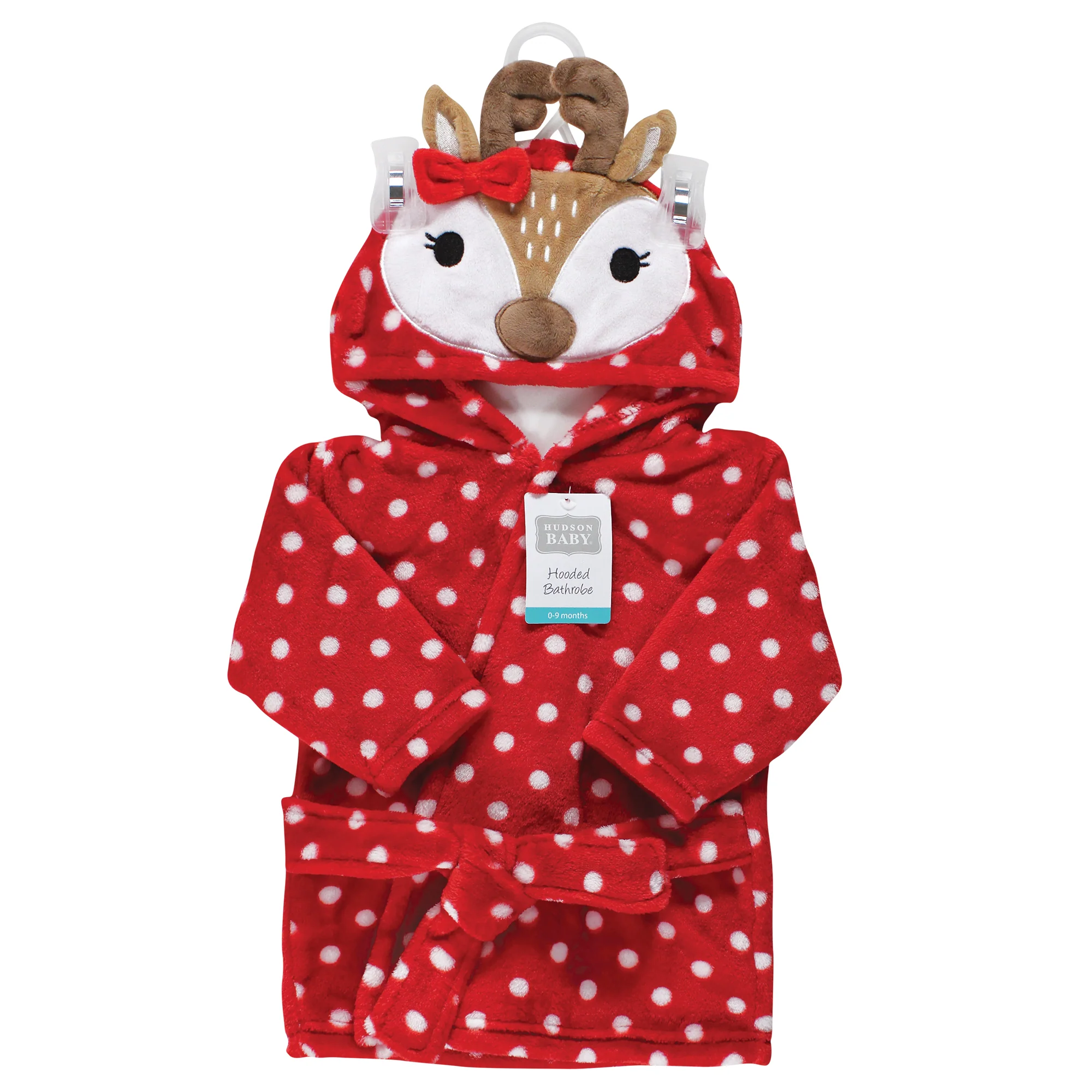 Hudson Baby Plush Animal Face Bathrobe, Holiday Reindeer, 0-9 Months