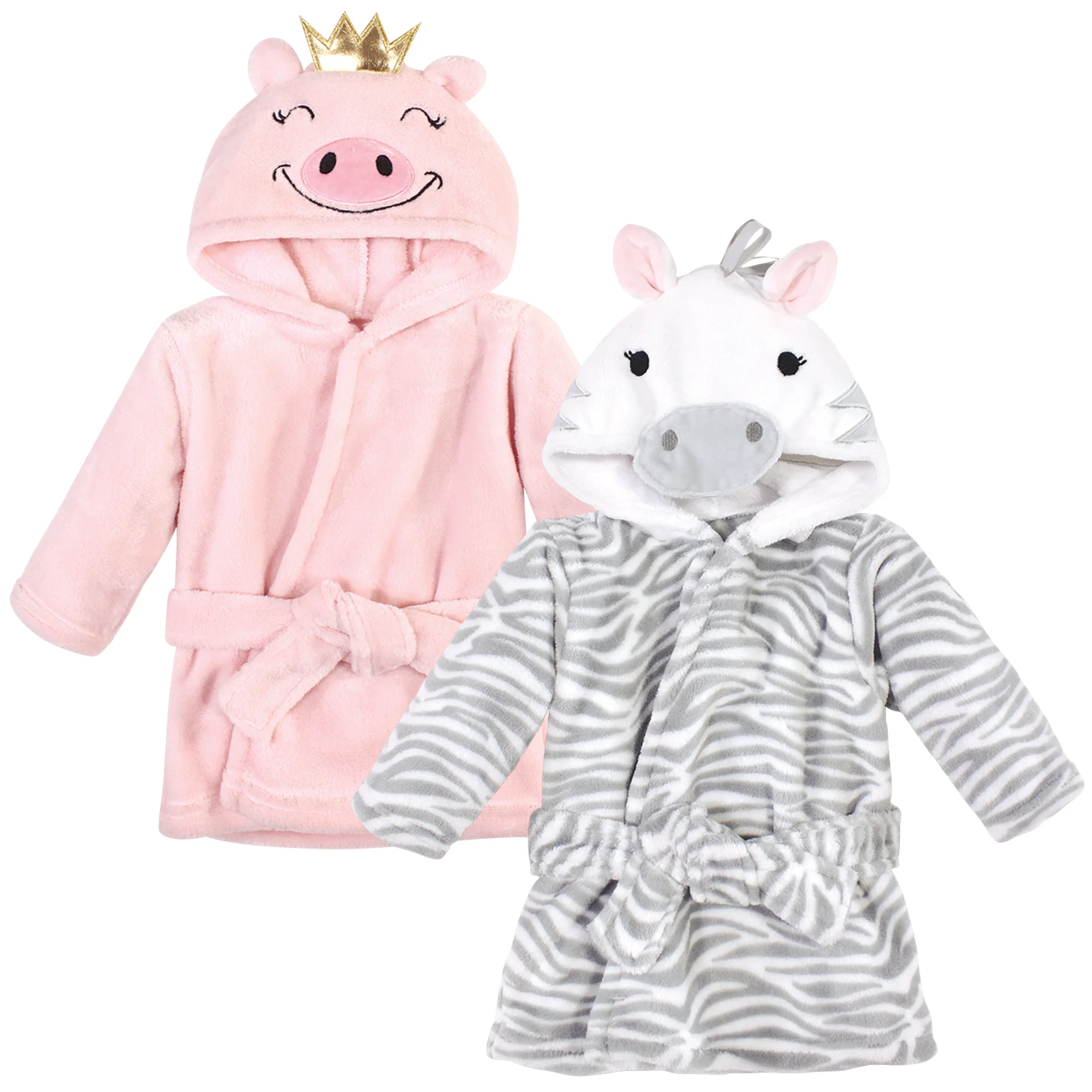 Hudson Baby Infant Girl 2 Piece Plush Animal Face Bathrobe, Pig Gray Zebra, 0-9 Months
