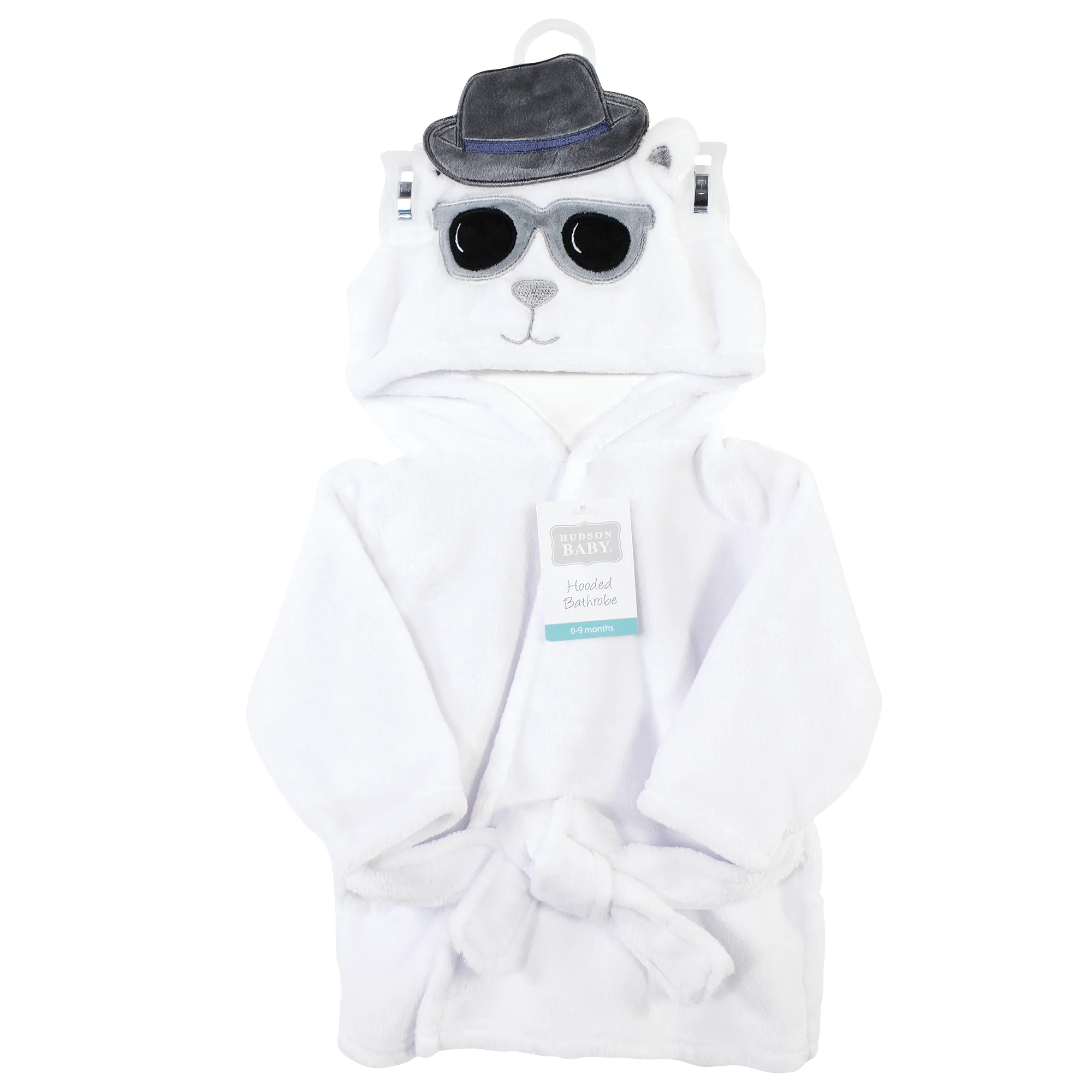 Hudson Baby Infant Boy Plush Animal Face Bathrobe, Handsome Bear, 0-9 Months