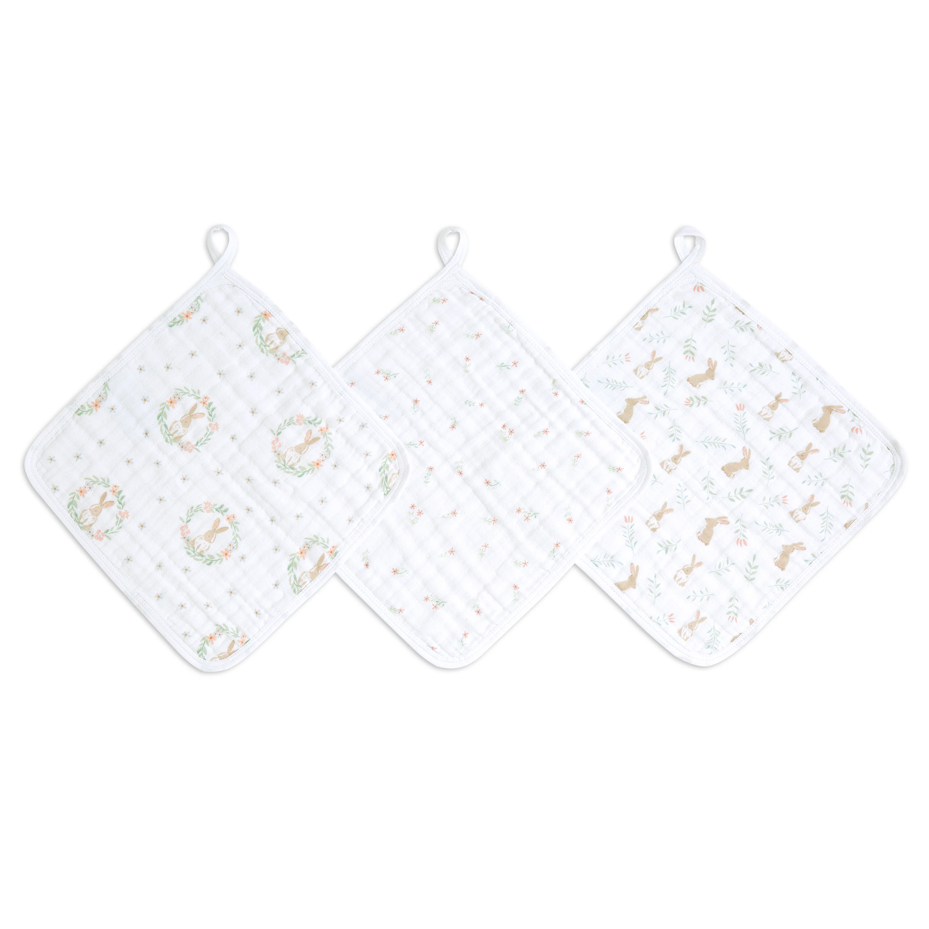 aden + anais Essential Cotton Muslin Washcloths 3 pack Blushing Bunnies Pink