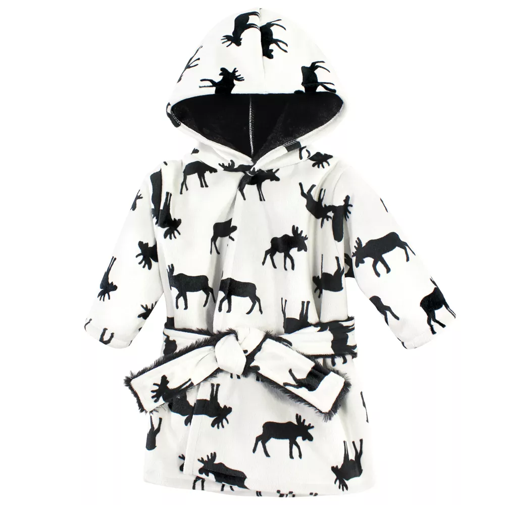Hudson Baby Infant Boy Plush Animal Bathrobe, Winter Moose, 0-9 Months