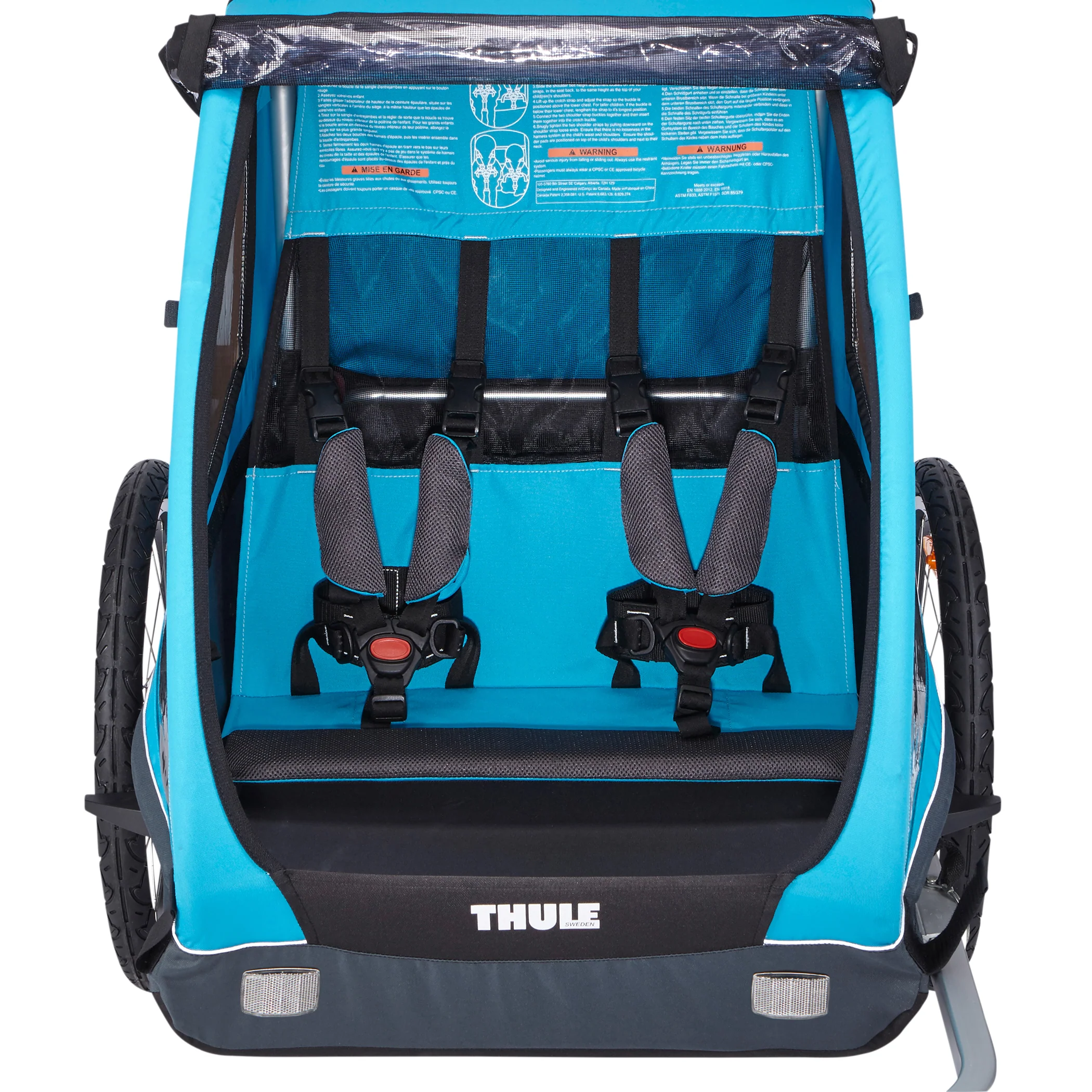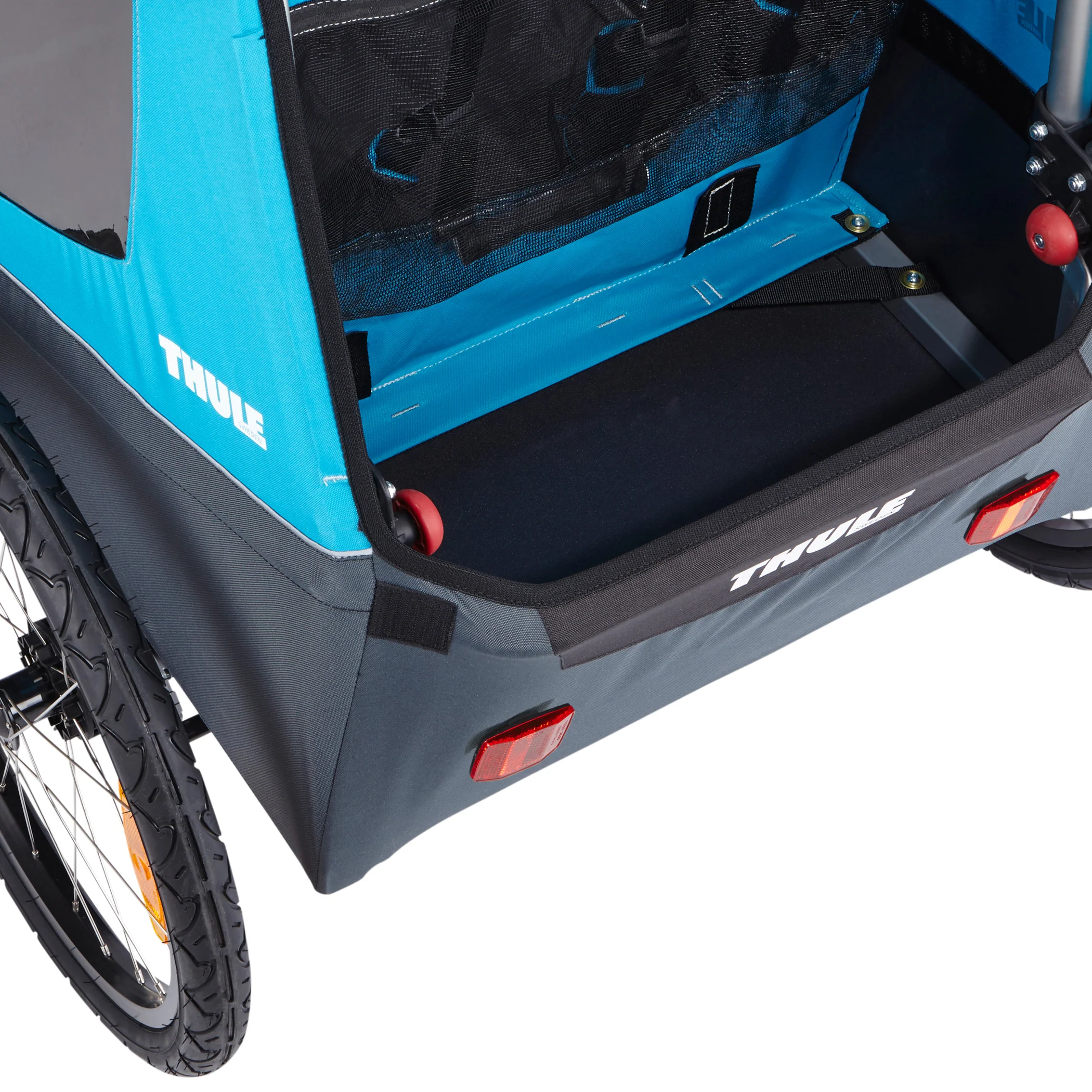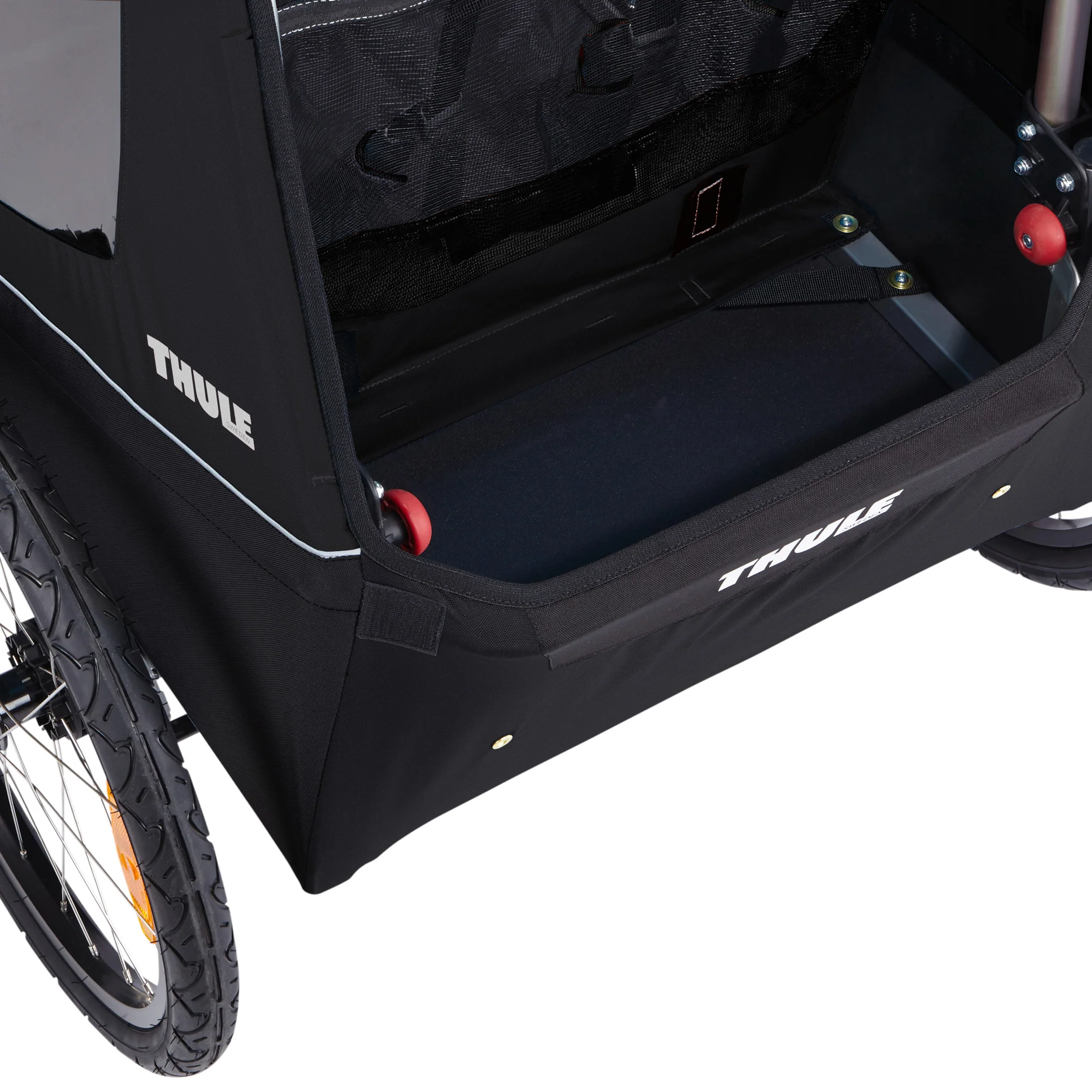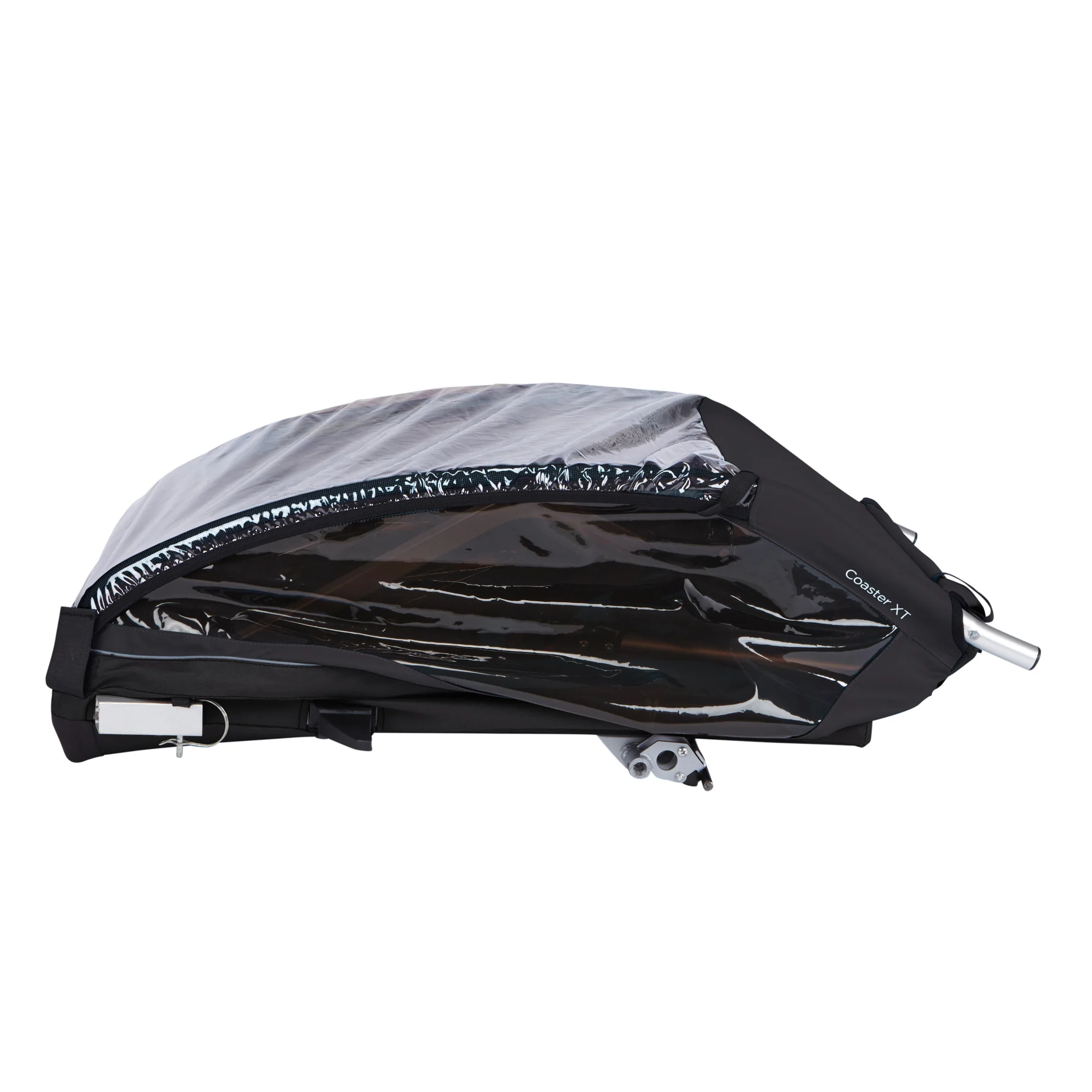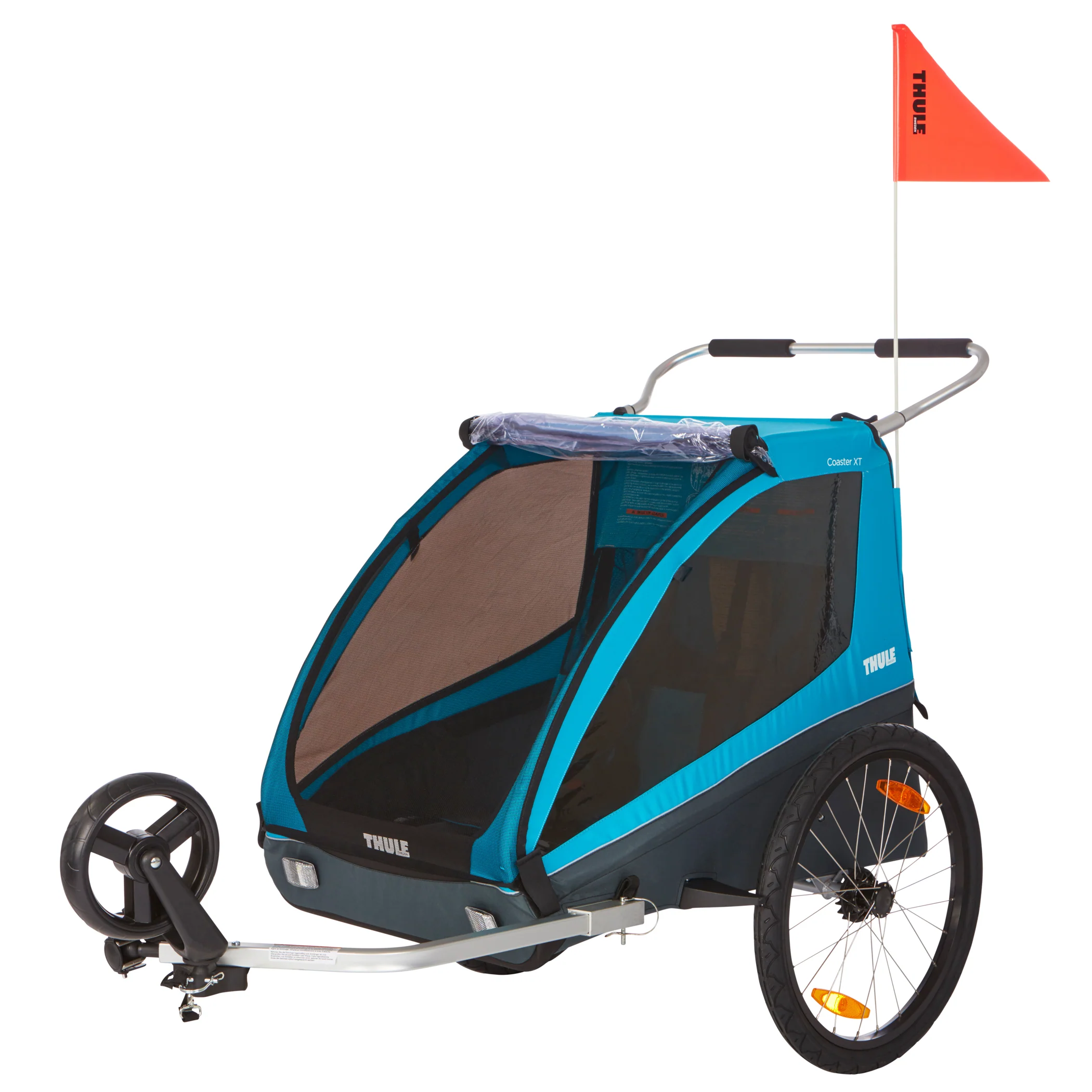 This bike trailer includes a biking and basic strolling kit​, an adjustable handlebar​ and extra storage compartment. The simple, compact fold​ makes it easy to transport. Thule Coaster XT uses the patented ezHitch for easy and quick attachment to bike, making it great for both busy commutes and relaxing recreation.