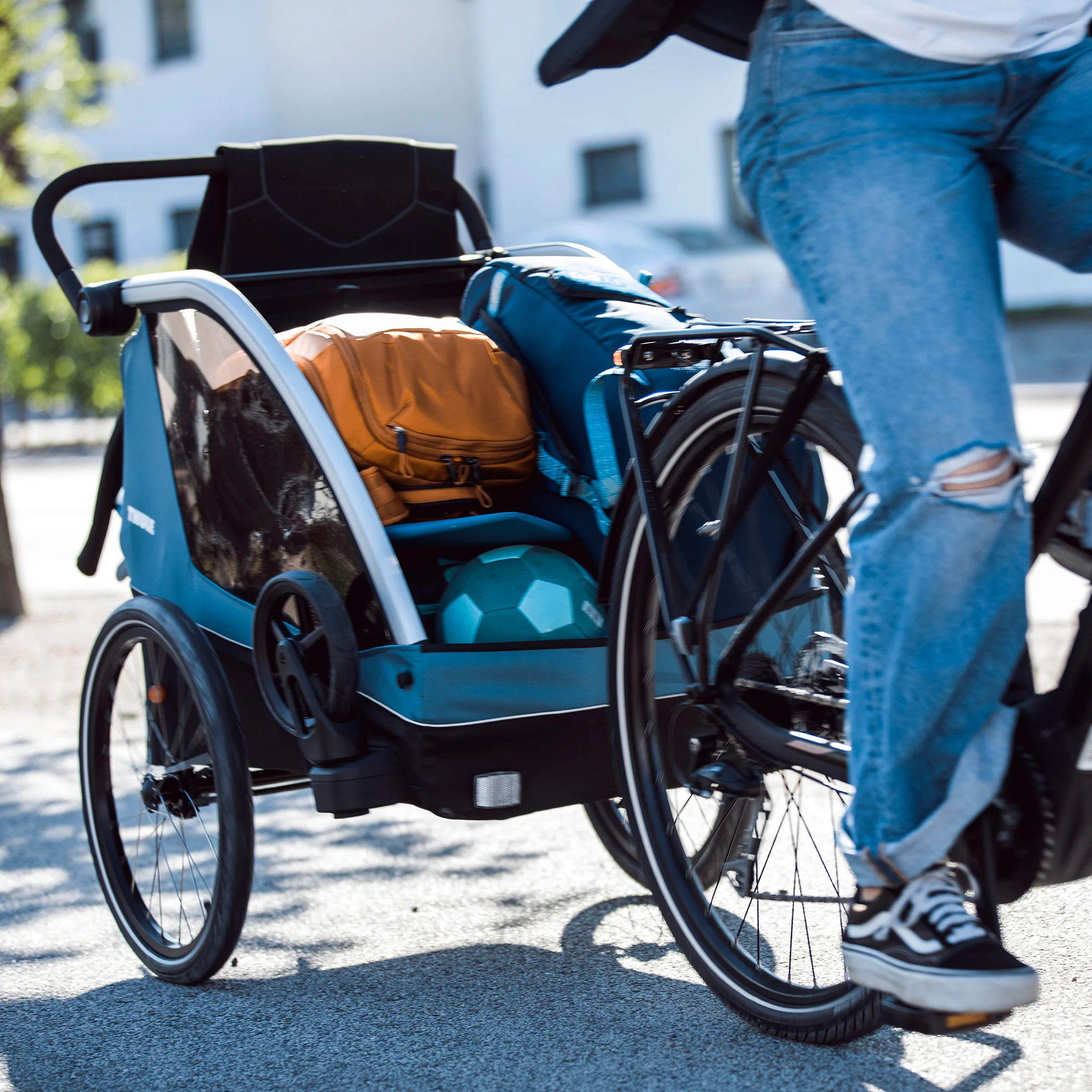The versatile bike trailer for active family life, Load up your family and gear for any destination with Thule Courier – a safe and comfortable bike trailer for up to two kids.