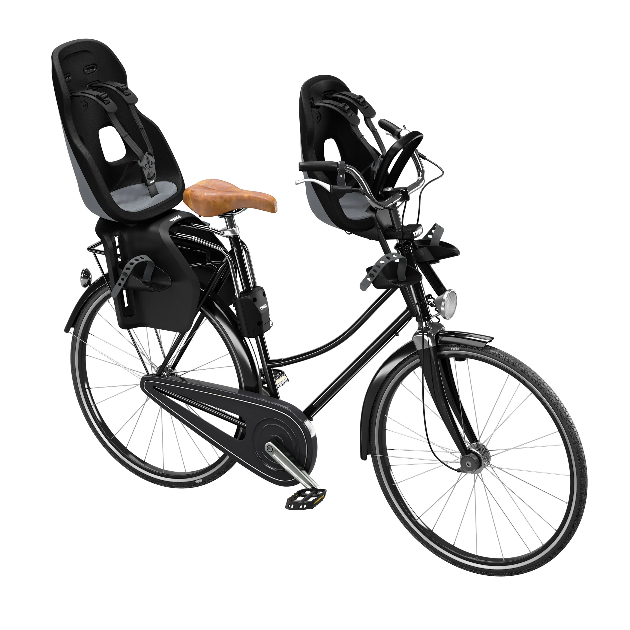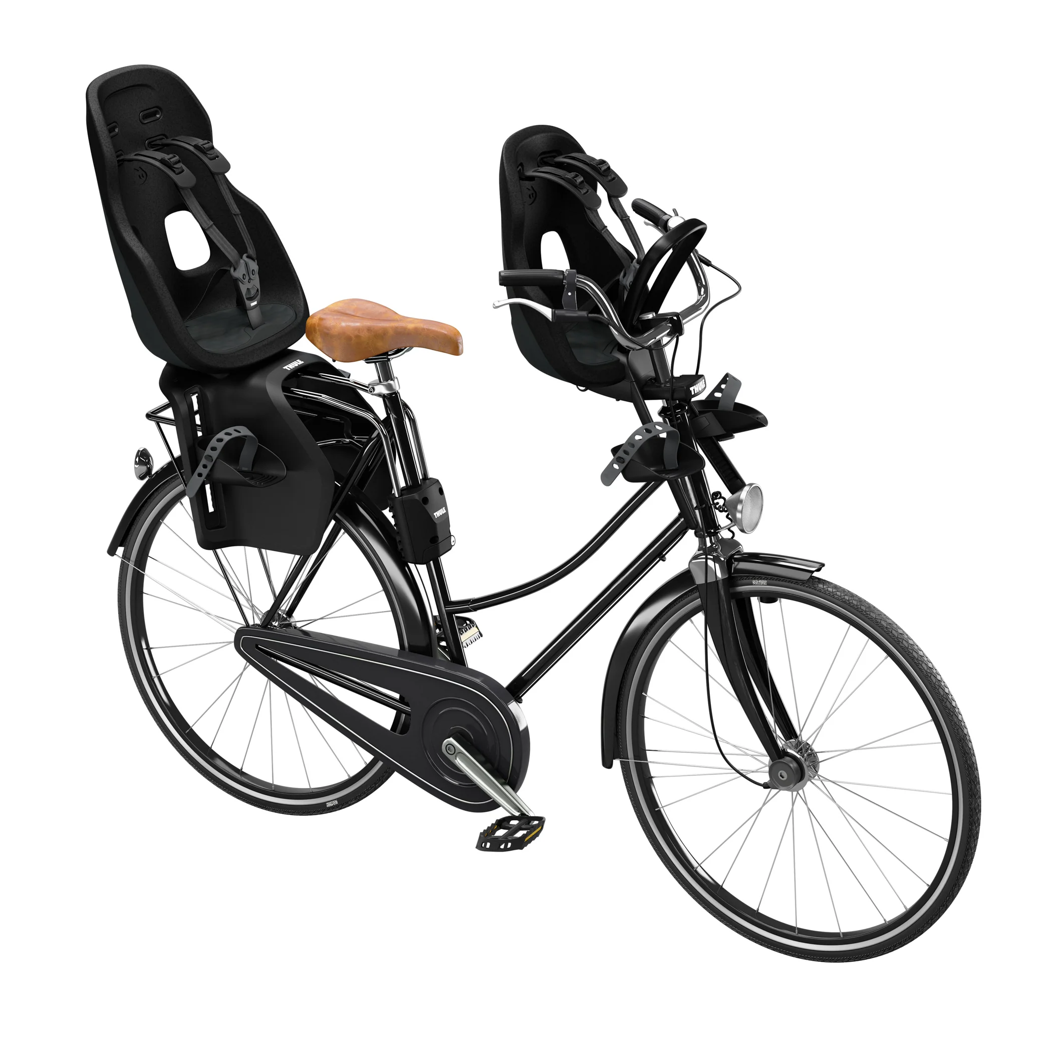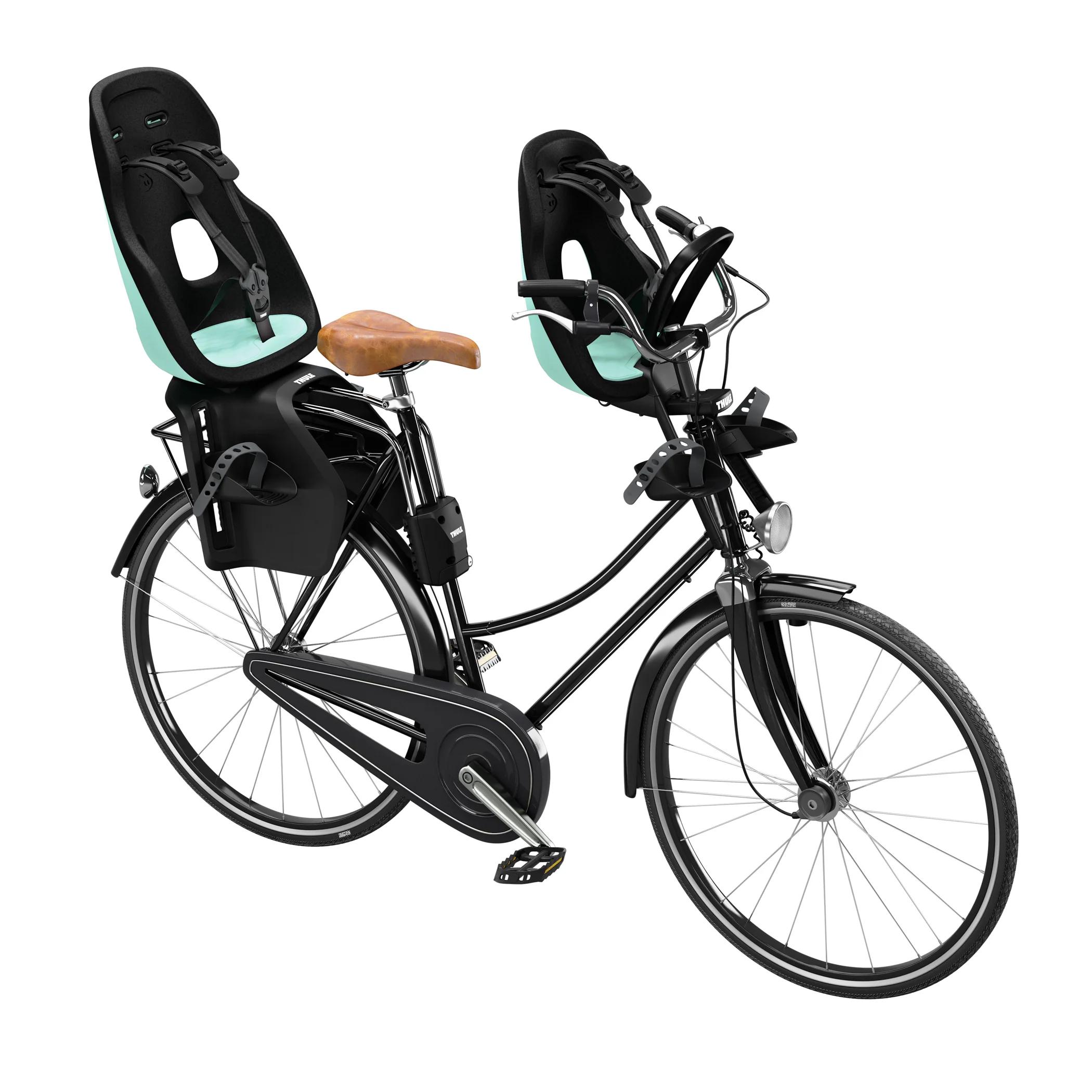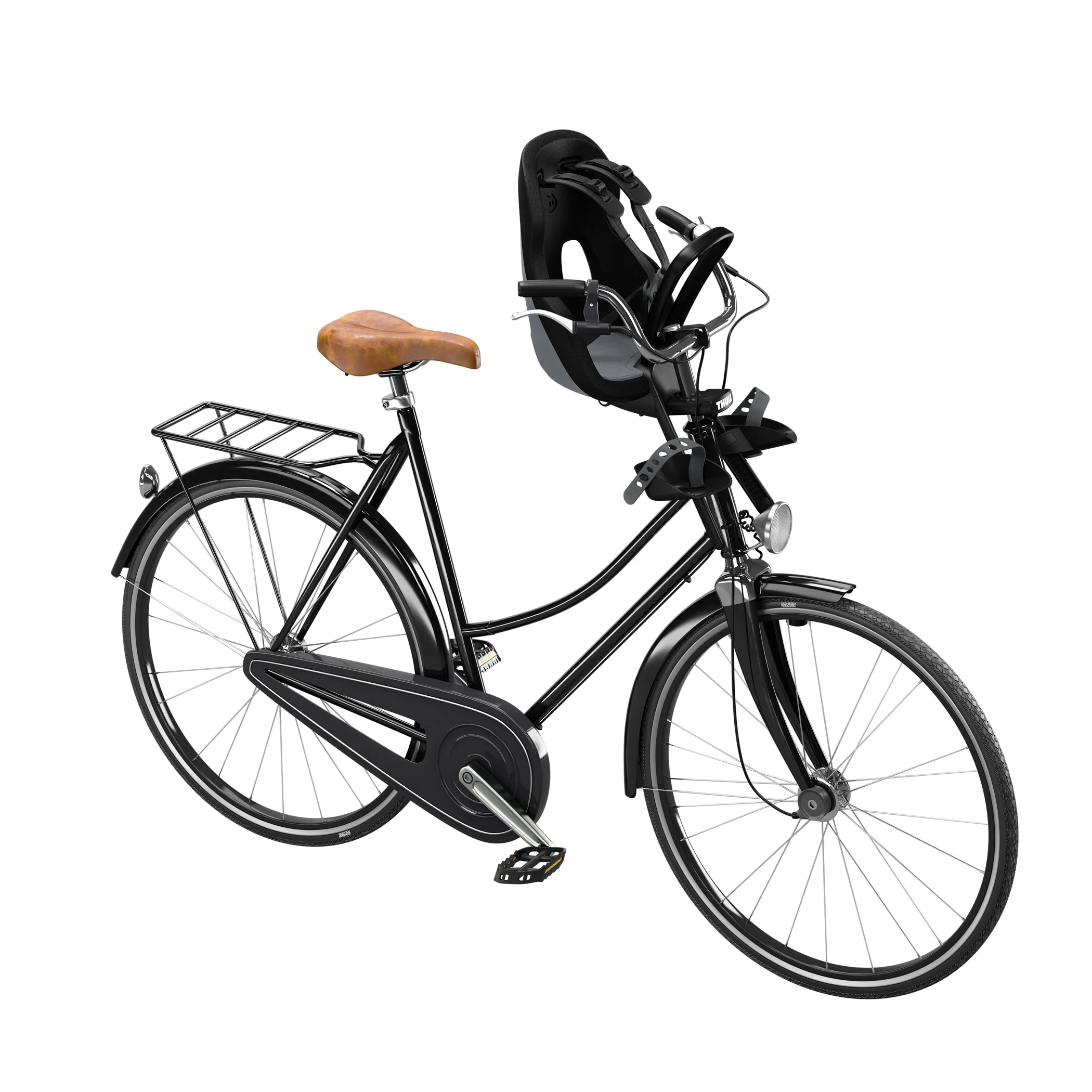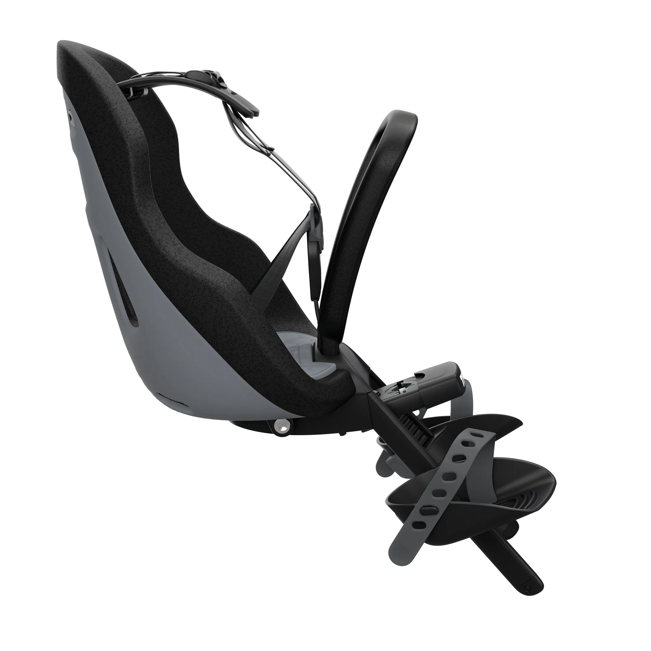 Light-weight and stylish front-mounted child bike seat with smart design for rides around town.
