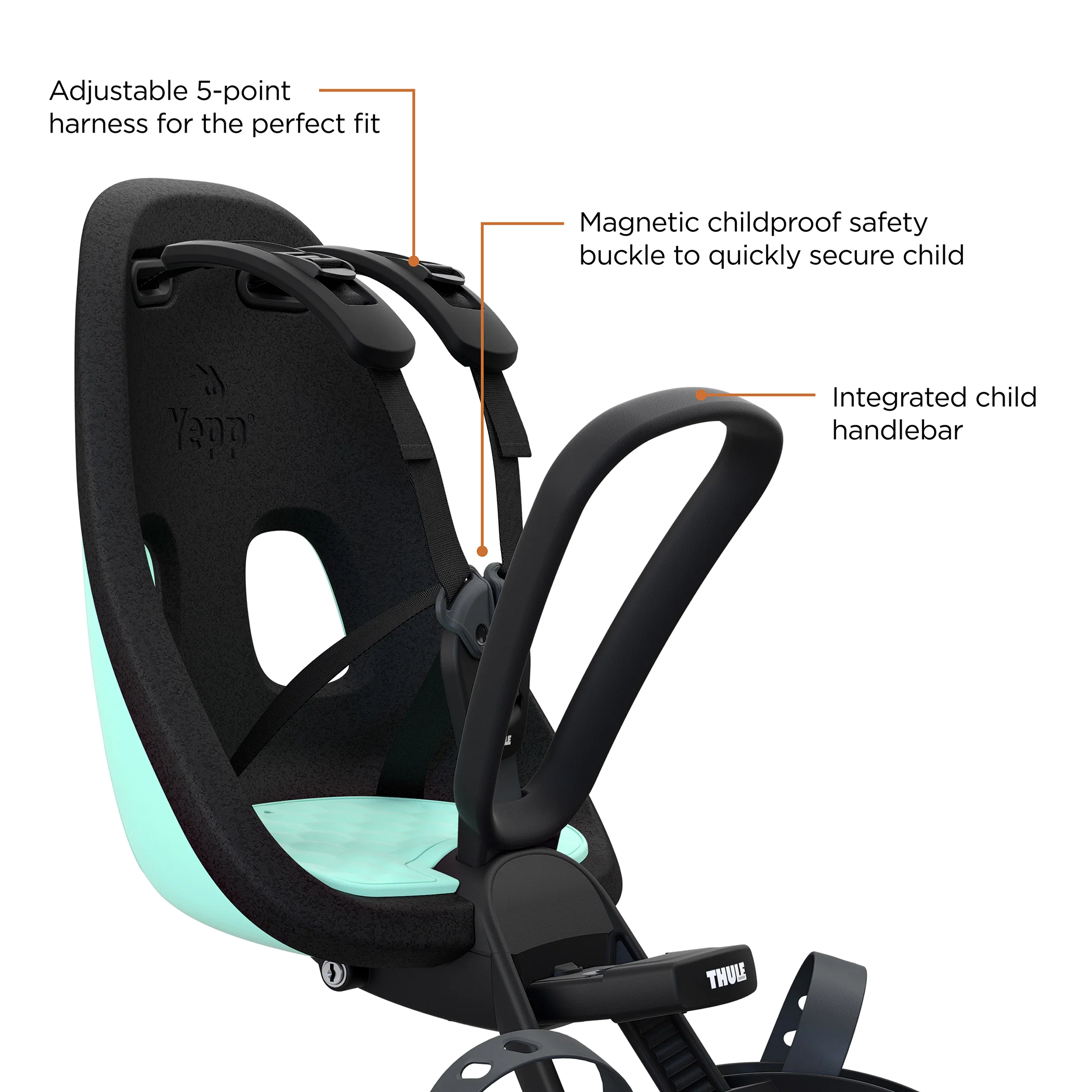 - Maximum child comfort and a safe, custom fit thanks to the adjustable padded 5-point harness