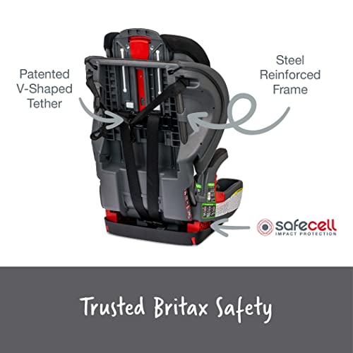 Find a car seat that grows with your child from toddler to big kid age with the Britax Grow With You(TM) harness-2-booster car seat. This high back booster seat starts as a 5-point harness car seat and converts into a belt-positioning booster that works with your car's seat belt. Installing this toddler car seat is simple using the premium, quick-push LATCH connectors. Quickly adjust the 9-position harness and headrest using just one hand for the proper fit as your child grows. Once they’re ready to use the seat belt, the 5-point harness tucks away, transitioning the seat to a belt-positioning booster. The color-coded belt guide helps you and your child route the seat belt through the right paths for a secure fit. This forward facing car seat is made with naturally flame-retardant fabrics and foam that are safe to machine wash and dry. SafeCell(R) Technology in the base acts as a crumple zone for additional protection for your growing child. This booster features armrests, 2 cup holders and stay-put harness pads, so even big kids enjoy the ride.