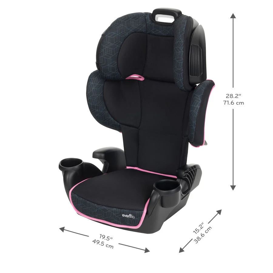 When your child is finally old enough to get up and go with a little more ease, the Evenflo® GoTime™ LX Booster Seat gets them to their next adventure with safety, comfort and style. Designed to accommodate children from 40 to 120 lb, 44 in to 57 in., and a minimum of 4 years of age, the GoTime LX is designed for older kids who could use an extra boost for safer seating in the vehicle. Offering two modes of forward-facing use and 7 height positions, you can easily adjust the height with just one hand to find the perfect fit for your growing child. Deep design with overlapping head and body sides keeps your child supported. Once they’re ready, the back quickly removes for a no back booster. The included belt clip helps properly position the vehicle’s belt on the child’s shoulder. Dual-integrated cup holders keep snacks and drinks close by, allowing you to stay focused on the road while driving. The padded seat adds comfort on long road trips, and is removable and machine-washable for easy cleaning. Comes in a choice of fun colors and patterns to let your child’s individuality shine.