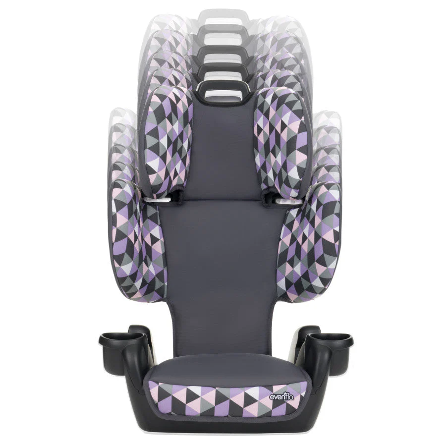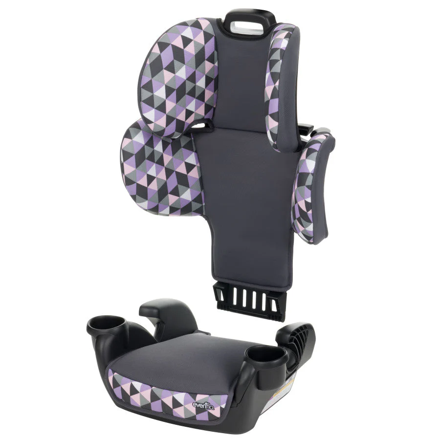 When your child is finally old enough to get up and go with a little more ease, the Evenflo® GoTime™ Sport Booster Seat gets them to their next adventure with safety, comfort and style. Designed to accommodate children from 40 to 120 lb, 44 in to 57 in., and a minimum of 4 years of age, the GoTime Sport is designed for older kids who could use an extra boost for safer seating in the vehicle. Offering two modes of forward-facing use and 7 height positions, you can easily adjust the height with just one hand to find the perfect fit for your growing child. Deep design with overlapping head and body sides keeps your child supported. Once they’re ready, the back quickly removes for a no back booster. The included belt clip helps safely position the vehicle’s belt on the child’s shoulder. Dual-integrated cup holders keep snacks and drinks close by, allowing you to stay focused on the road while driving. The padded seat adds comfort on long road trips, and is removable and machine-washable for easy cleaning. Comes in a choice of fun colors and patterns to let your child’s individuality shine.