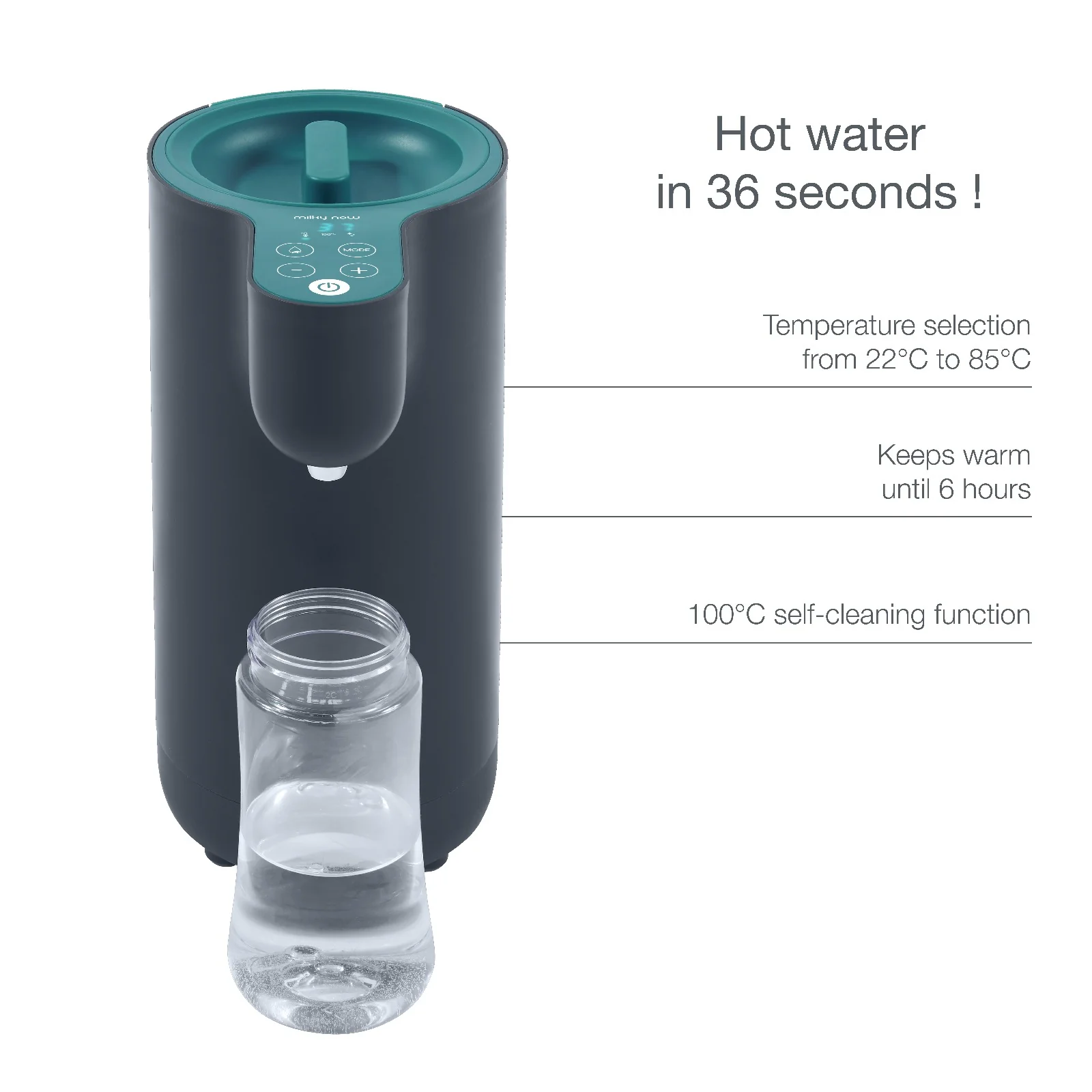 - BABY BOTTLE PREP MADE EASY: Holds and dispenses water instantly at the right temperature day & night without having to wait. A large capacity of over 4 cups gives up to 12 bottles per tank.