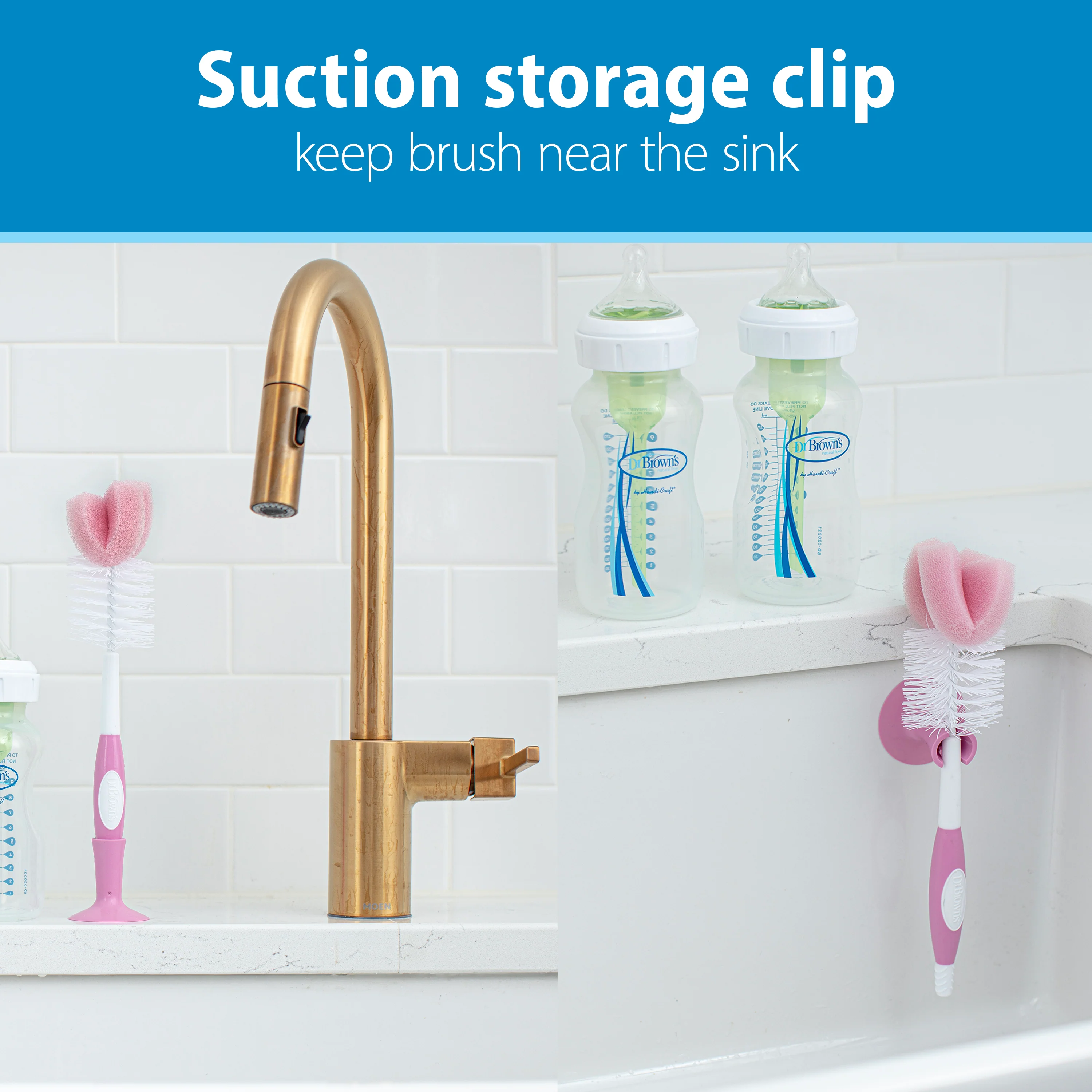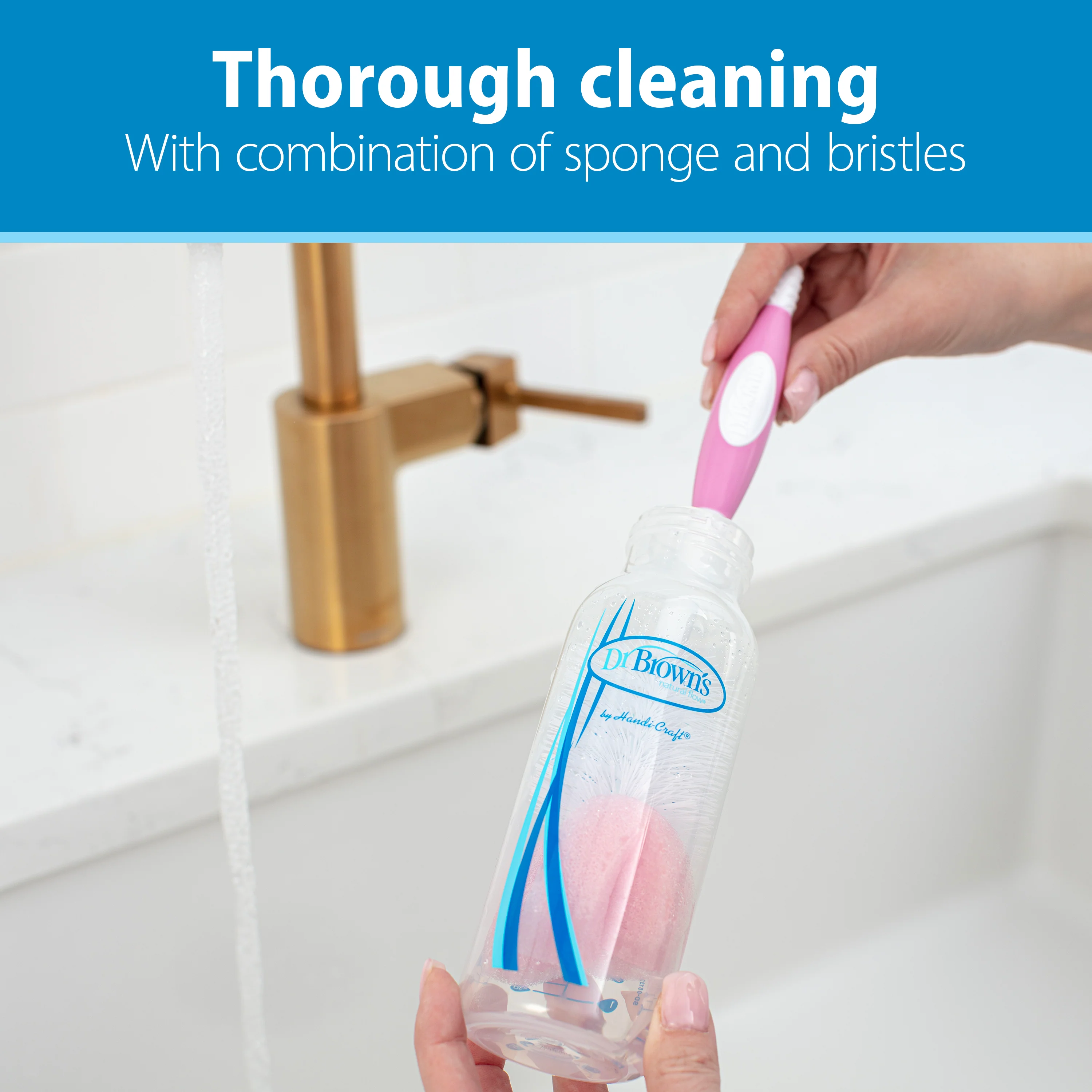 For use with standard and wide-neck Dr. Brown's Natural Flow baby bottles, this brush features a combination sponge and bristle brush head for thorough cleaning. Its grooved, no-slip handle offers ridged chevron channels to clean nipples with ease.