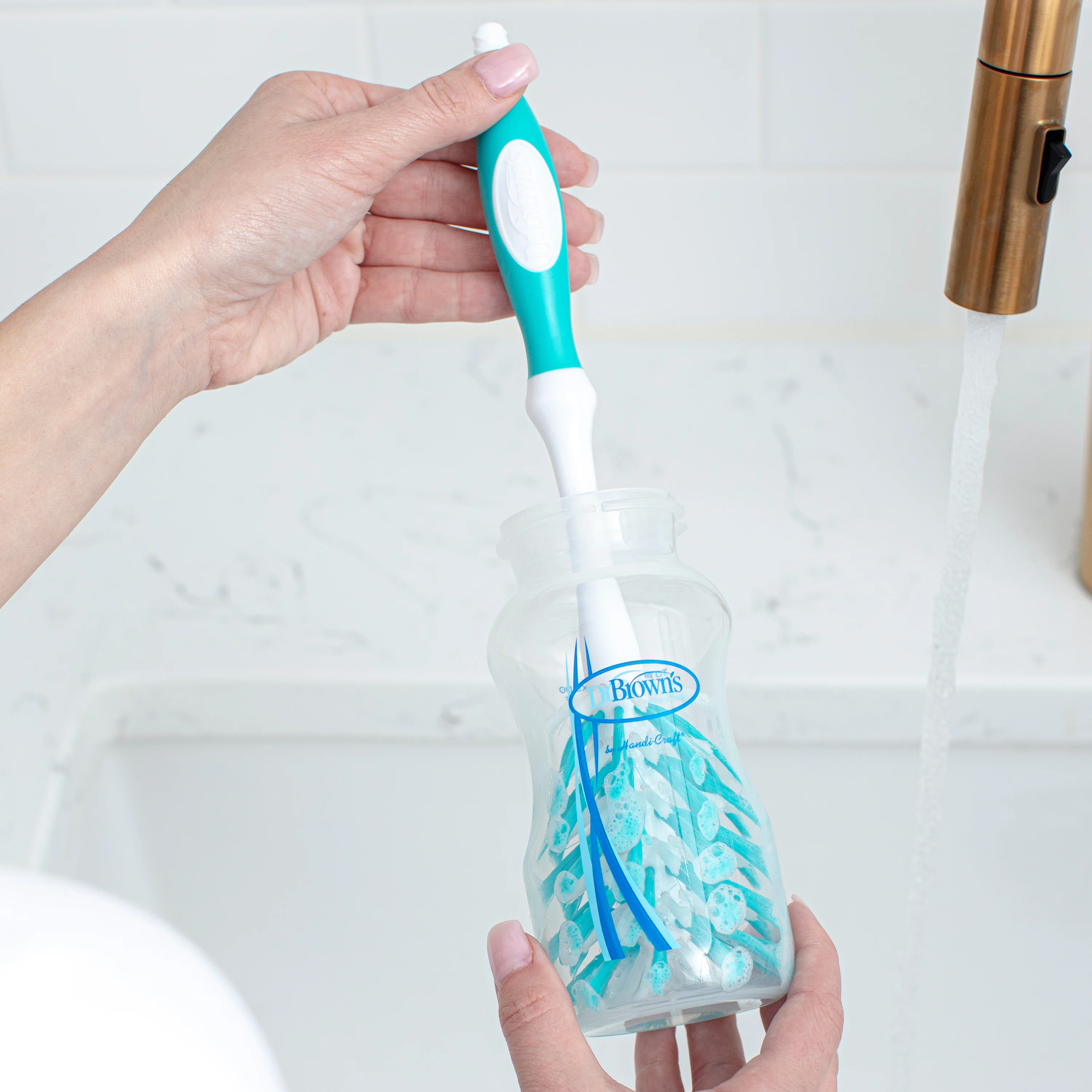 - Angled bristle pattern reaches all corners of bottles