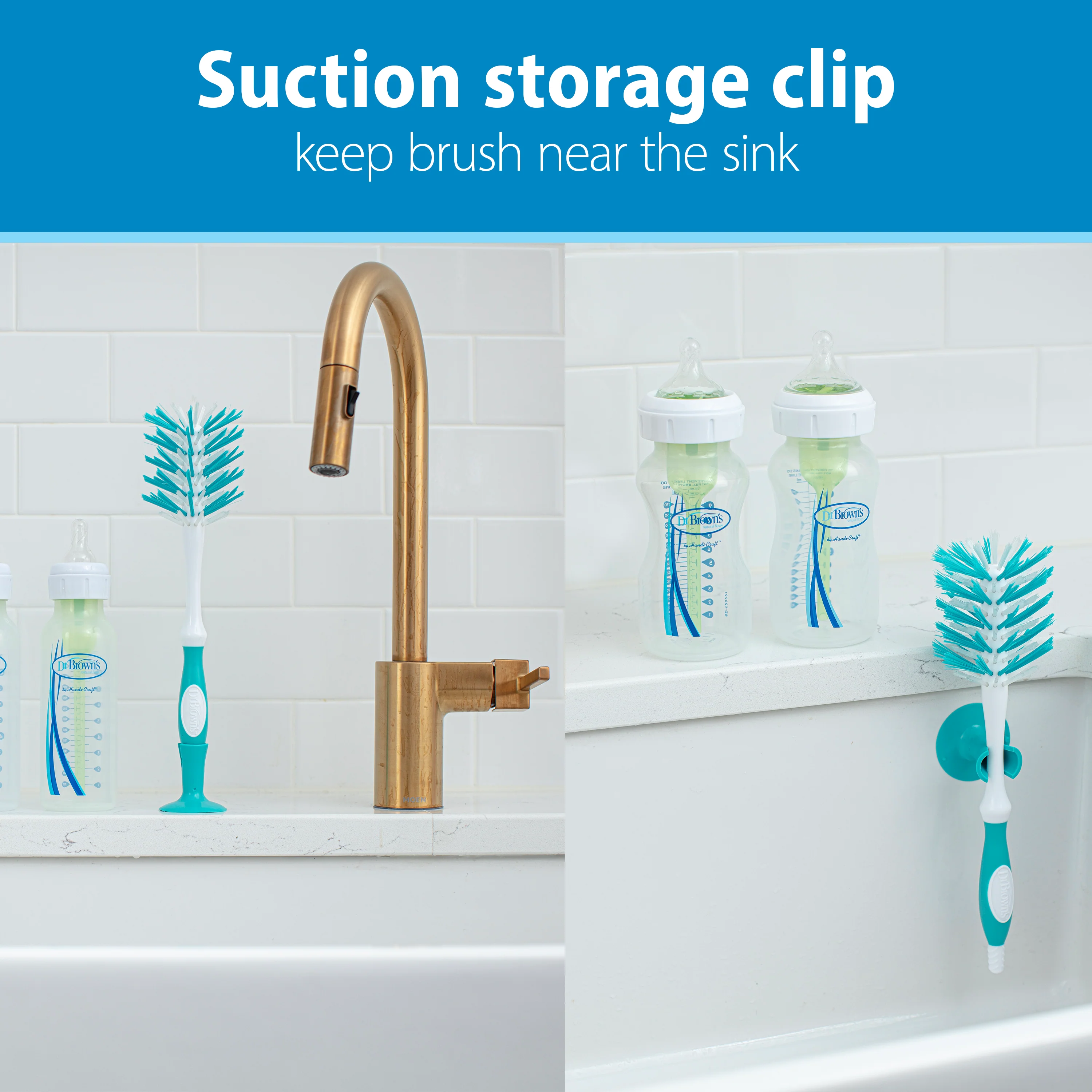 - Suction cup storage clip allows brush to dry standing upright