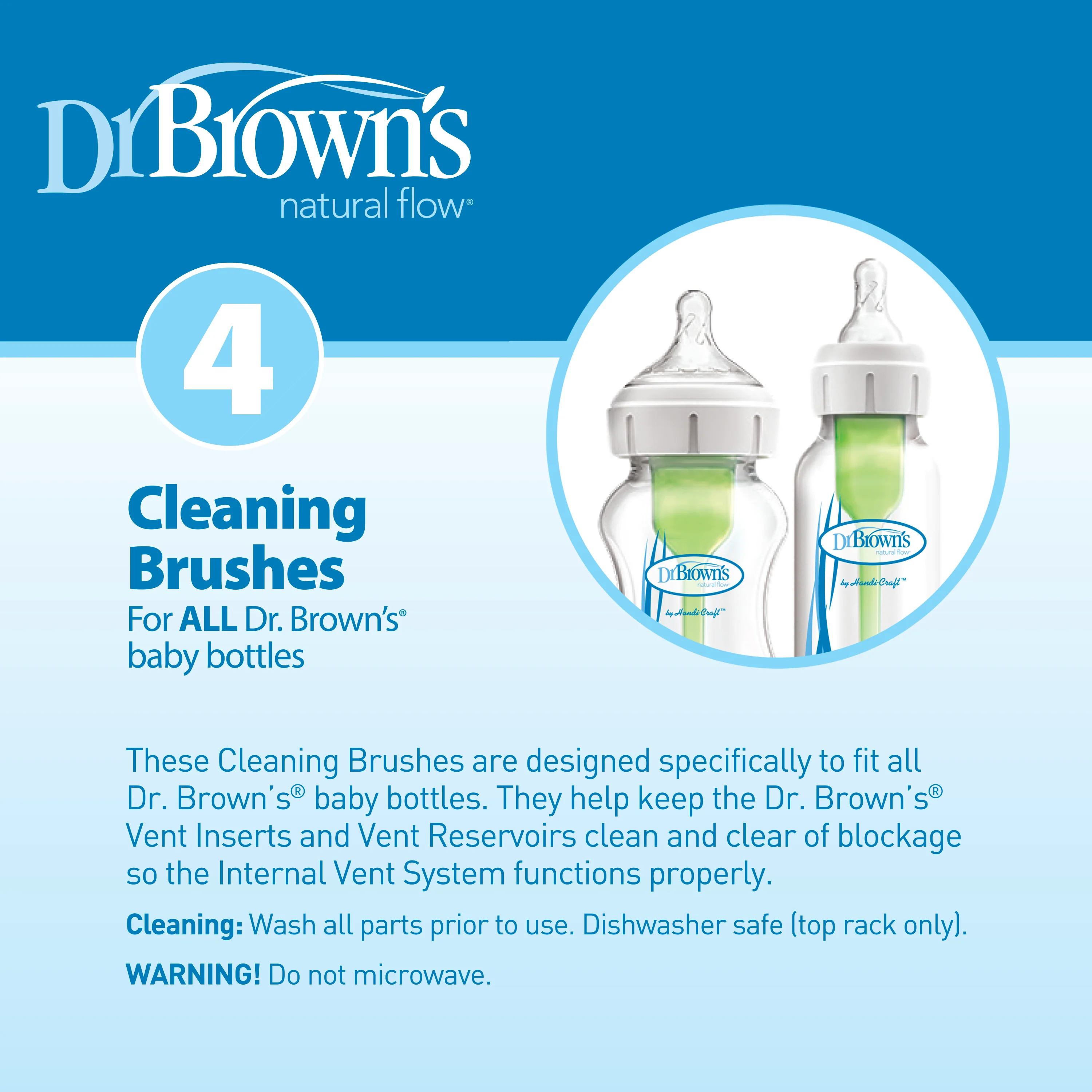 Perfect for cleaning bottles, bottle parts and pieces, these brushes work well for both wide neck and standard size Dr. Brown's ® bottles.
