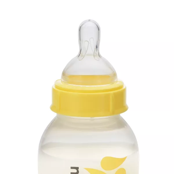 Available in slow and medium flow, these wide base silicone nipples for feeding newborns and infants have a natural feel and shape. Compatible with all Medela bottles.