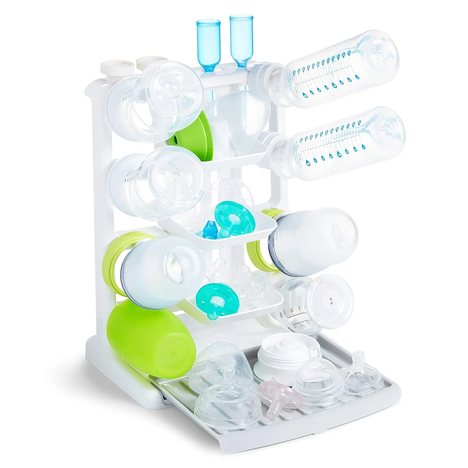 Between the cuddles, bottles, diapers and laundry, baby's first year can feel like a beautiful blur - especially with Midnight bottle washing sessions in the mix. Designed with a minimal footprint and maximum practicality, the tidy dry drying rack keeps baby bottles, parts and pacifiers from consuming the kitchen after you wash! With a smart vertical design and clips to hold bottles at just the right angle for drying, this compact rack is the perfect match for limited counter space. There's no need for multiple drying racks; this one has dedicated spots and slots to keep everything in one place, plus a drip tray that pulls out for more room when you need it. Uncluttered counters are finally within reach - and so are freshly cleaned baby bottles!