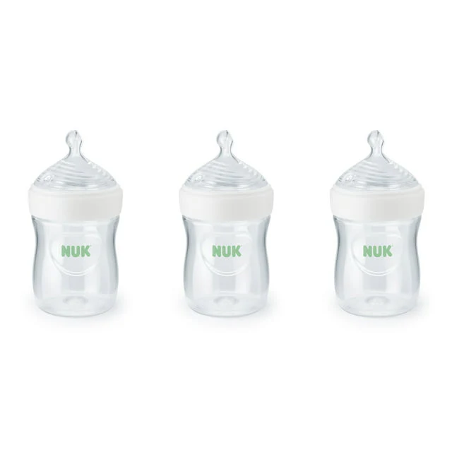 Now baby can transition from breast to bottle in a natural way with the NUK® Simply Natural™ Bottles. Designed to mimic the fit, flow, and movement of mom, 9 nipple holes imitate the shape of mom's breast while breastfeeding.