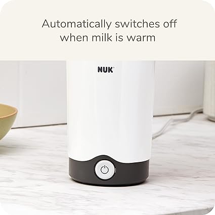 The NUK Thermo Express Baby Bottle Warmer is one of many baby essentials for newborns that can help make life easier for parents. Finding the right temperature quickly and efficiently can help make bottle preparation a breeze. In just 90 seconds*, baby's milk is gently warmed to the right temperature without compromising all of its important nutrients and vitamins. With the help of the basket, the appliance warms baby food to the right temperature quickly and gently with steam in just 90 seconds*. An integrated light indicates that the appliance is warming to eliminate any guesswork. For added safety and reduced energy consumption, the bottle warmer automatically switches off as soon as the filled quantity of water has evaporated. The bottle warmer is suitable for most standard baby bottles and glass baby food jars. The NUK Thermo Express Bottle Warmer should be descaled regularly to maintain its efficiency. Please make sure that the water does not go below the minimum level to ensure baby's food is warmed thoroughly. Please note: This appliance is not suitable for PE plastic bottles, Tritan™ plastic bottles, or breast milk bags. *From room to drinking temperature; 4 fl oz heated in a 8 oz. bottle.