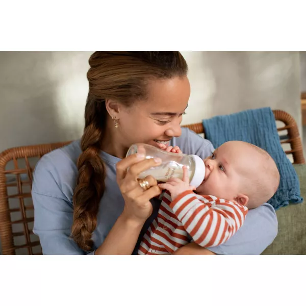 - Wide breast-shaped nipple with a soft feel that mimics the shape and feel of a breast so your baby can controllthe flow of milk like they do when breastfeeding