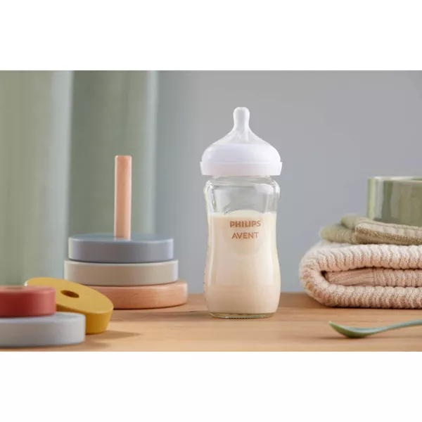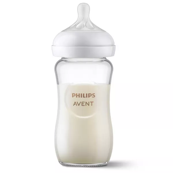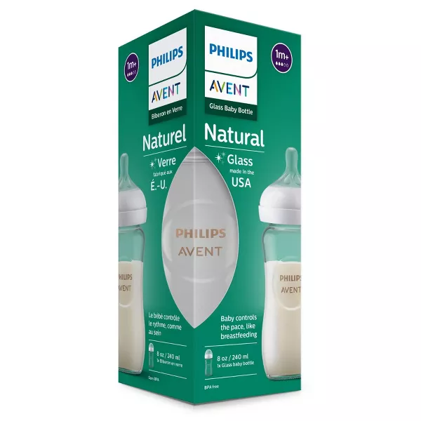 The Philips Avent Natural Glass Bottle features a wide breast-shaped nipple with a soft feel that mimics the shape and feel of a breast. Its Natural Response nipple lets your baby control the pace of the milk flow. Features an anti-colic valve.